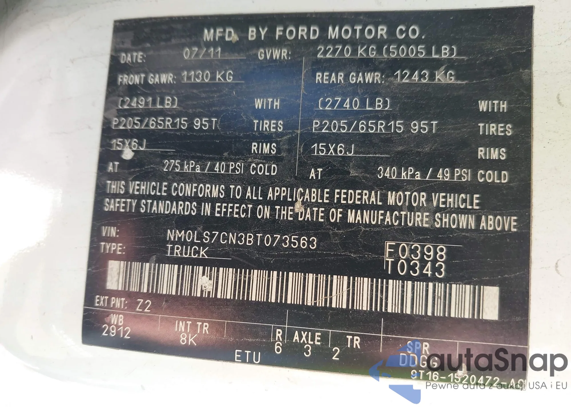 • VIN NM0LS7CN3BT073563