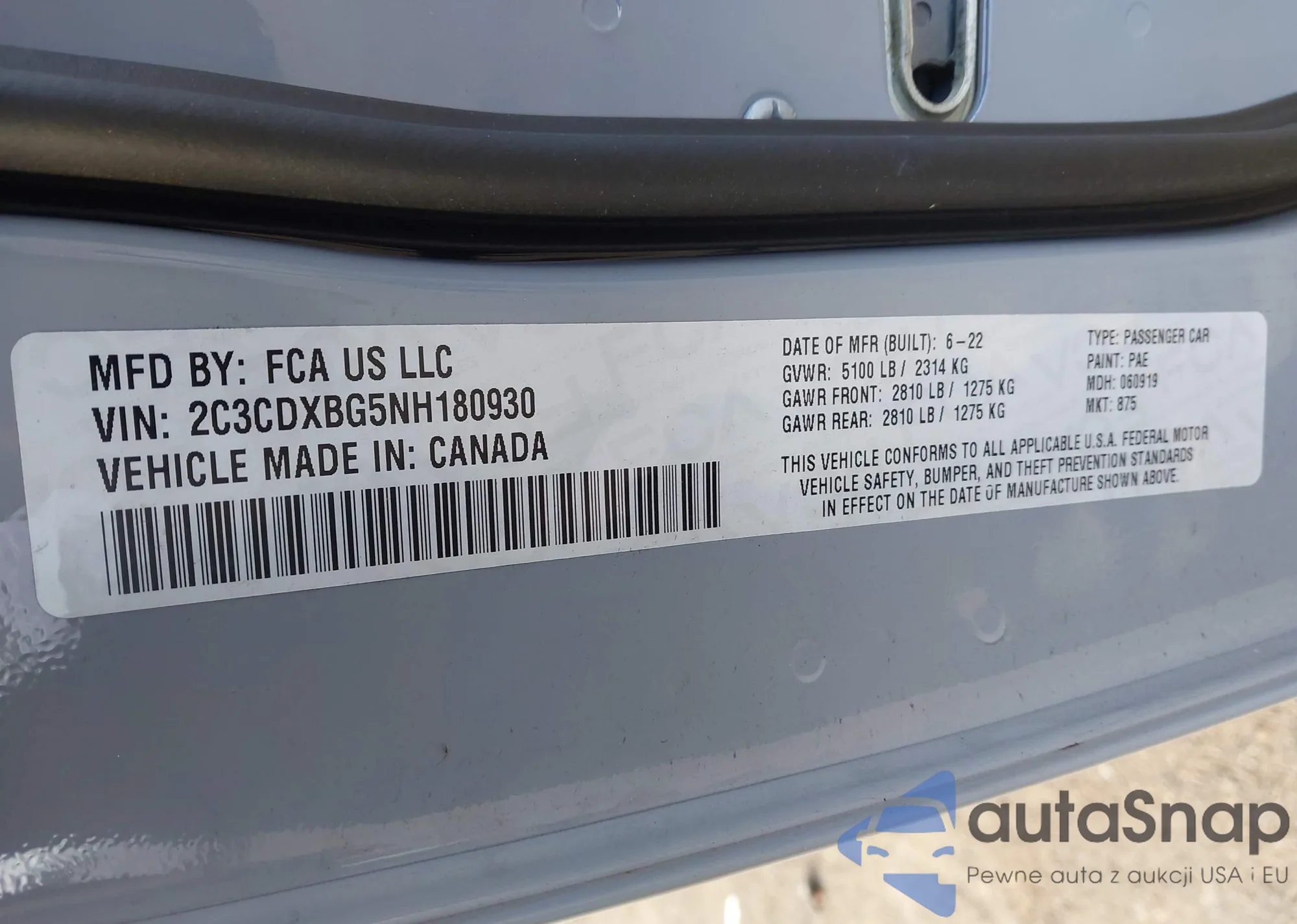 • VIN 2C3CDXBG5NH180930