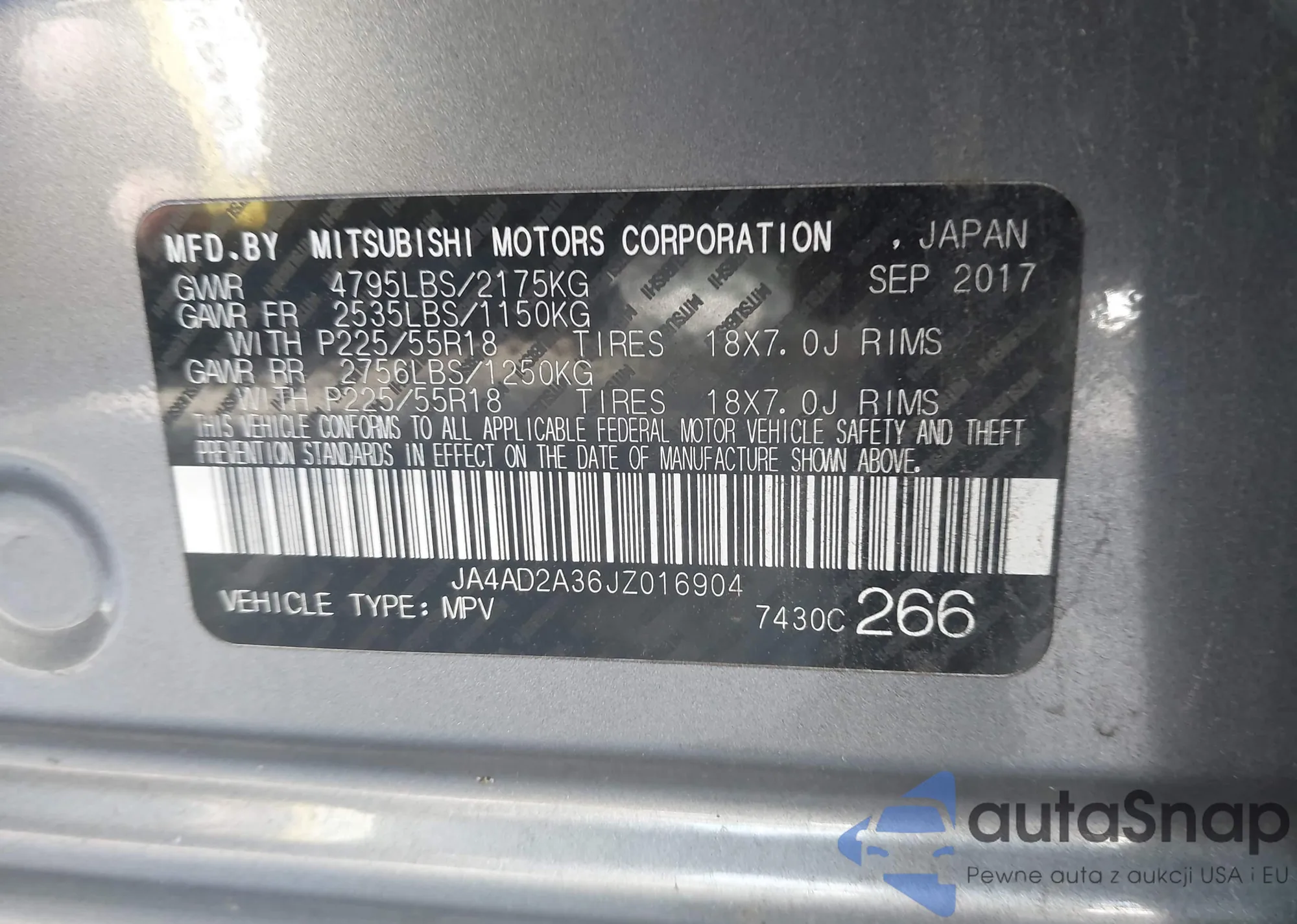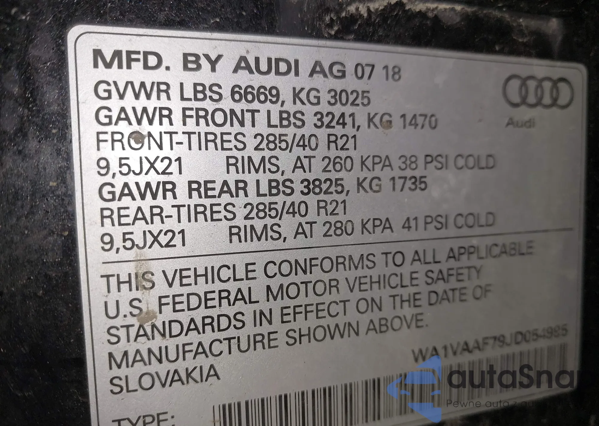 LOT: 43825099 VIN: WA1VAAF79JD054995