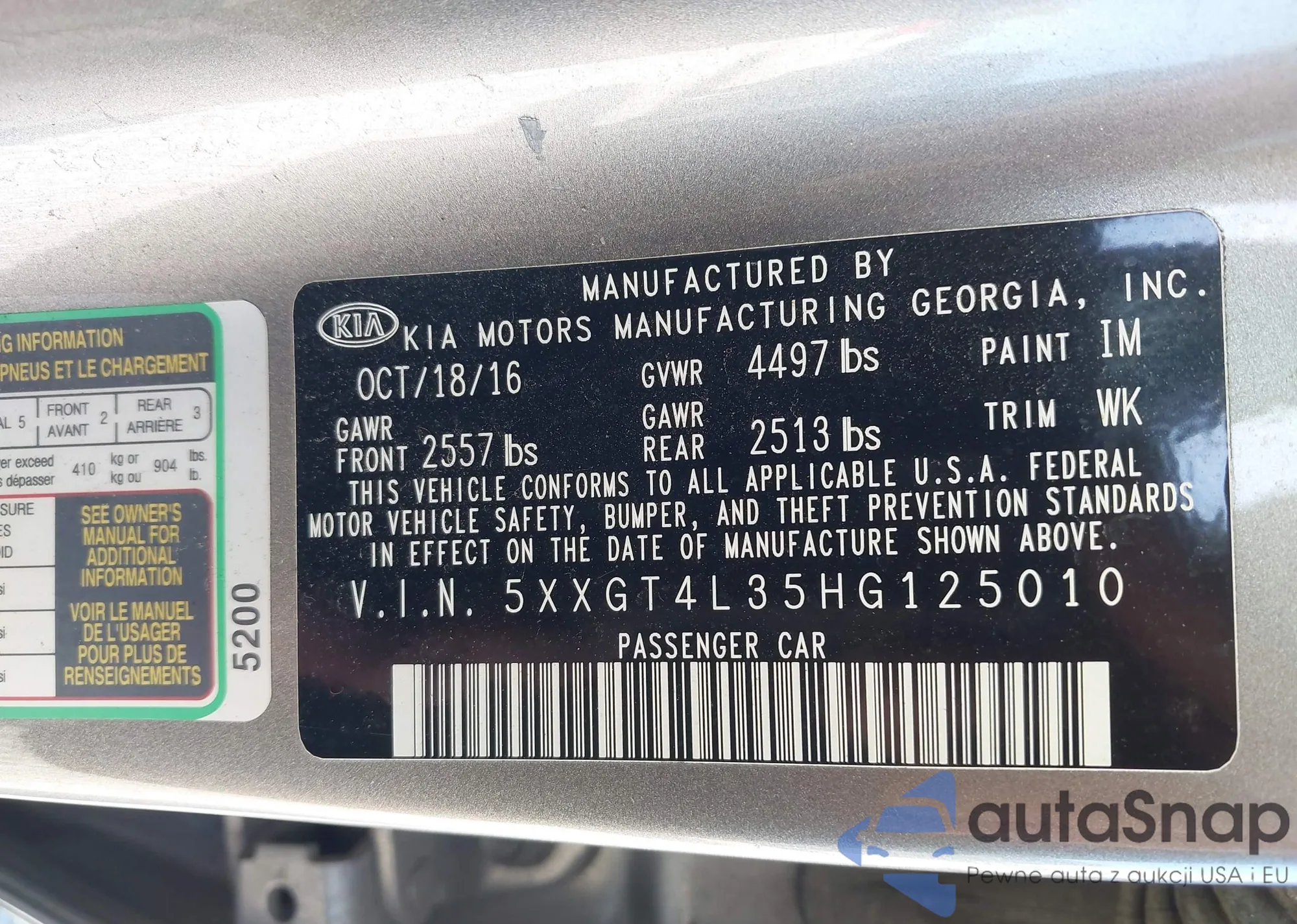 • VIN 5XXGT4L35HG125010