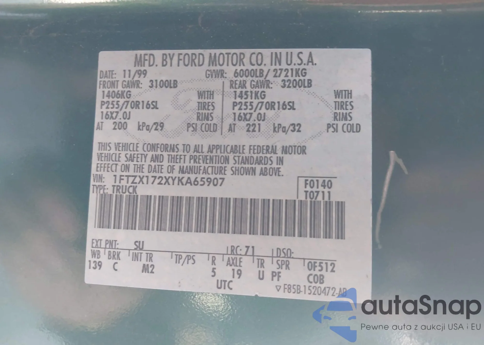 LOT: 43385448 VIN: 1FTZX172XYKA65907
