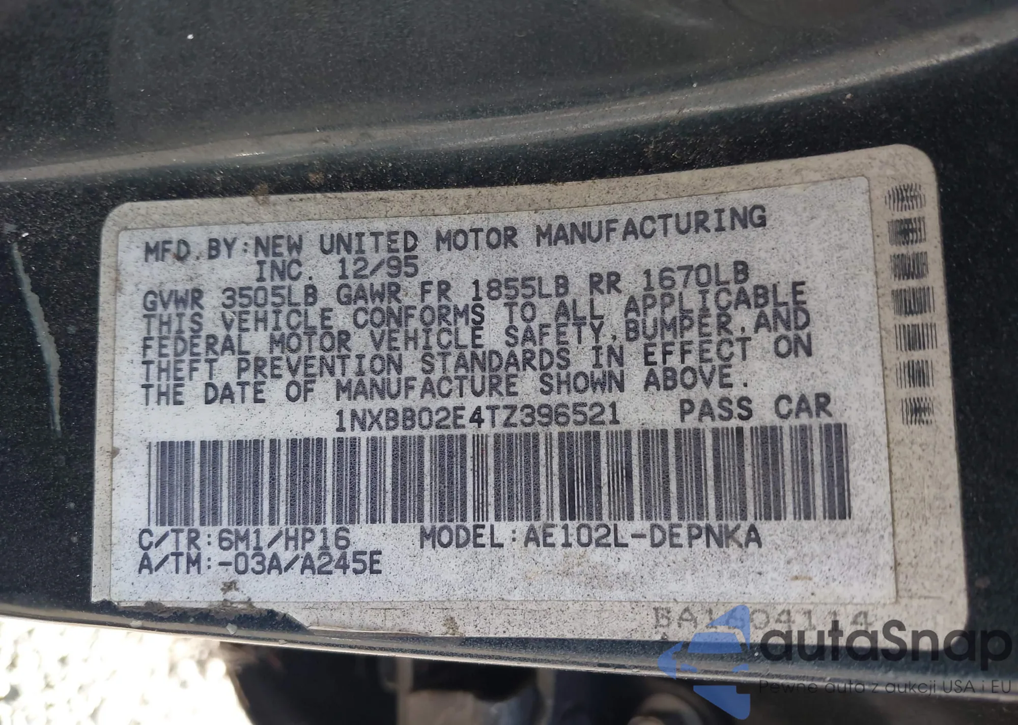 • VIN 4T1KZ1AK0RU094130