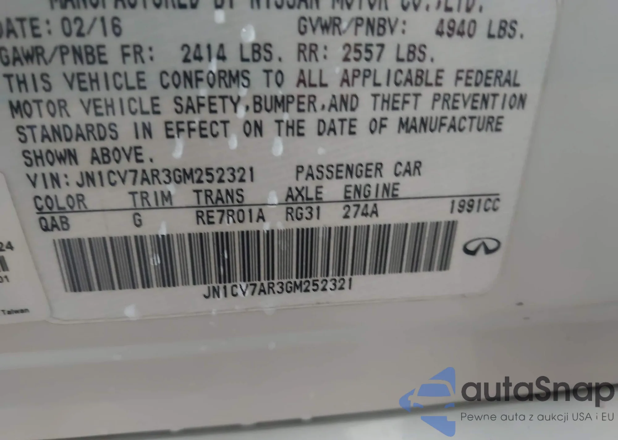 • VIN JN1CV7AR3GM252321