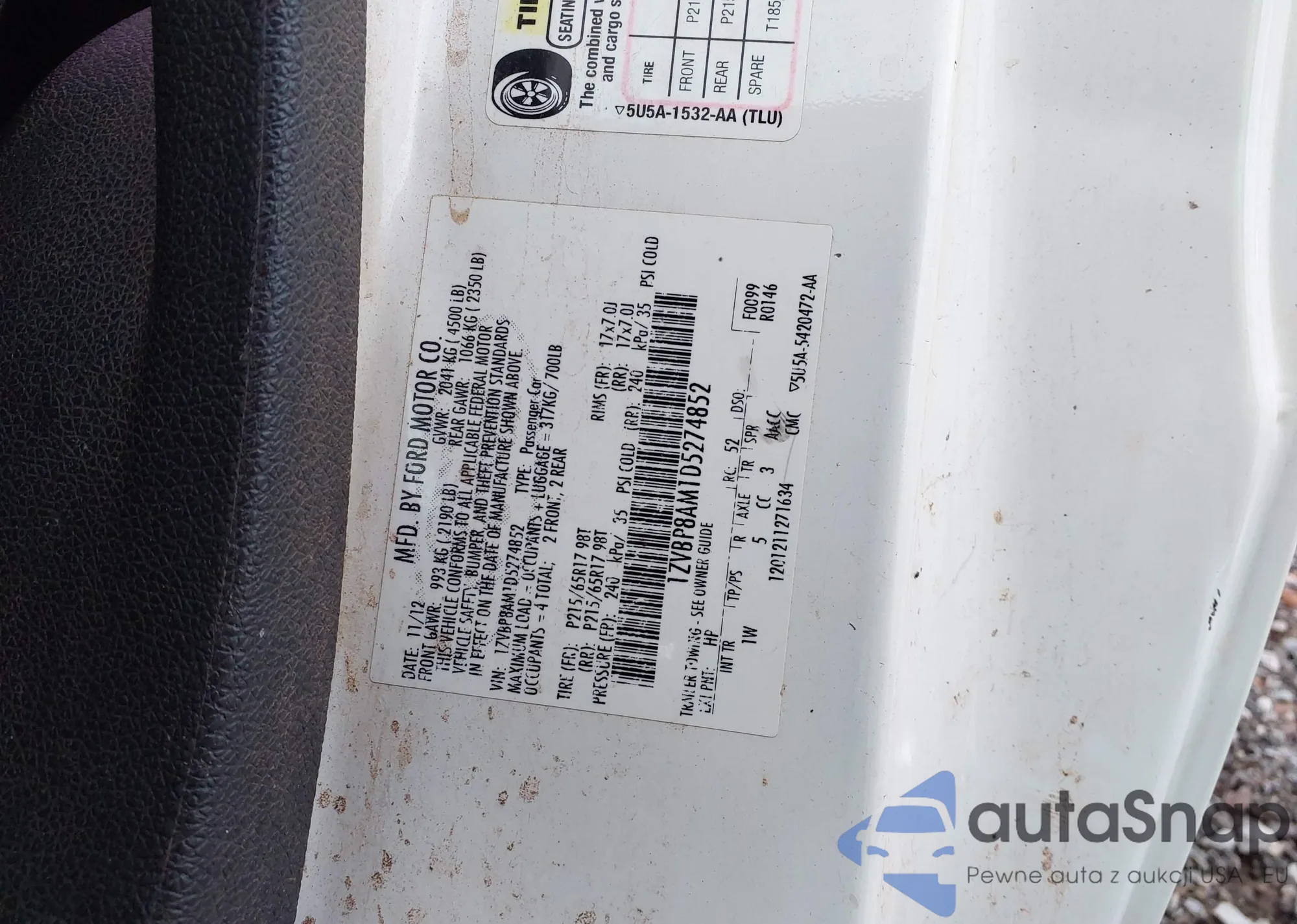 LOT: 43568489 VIN: 1ZVBP8AM1D5274852