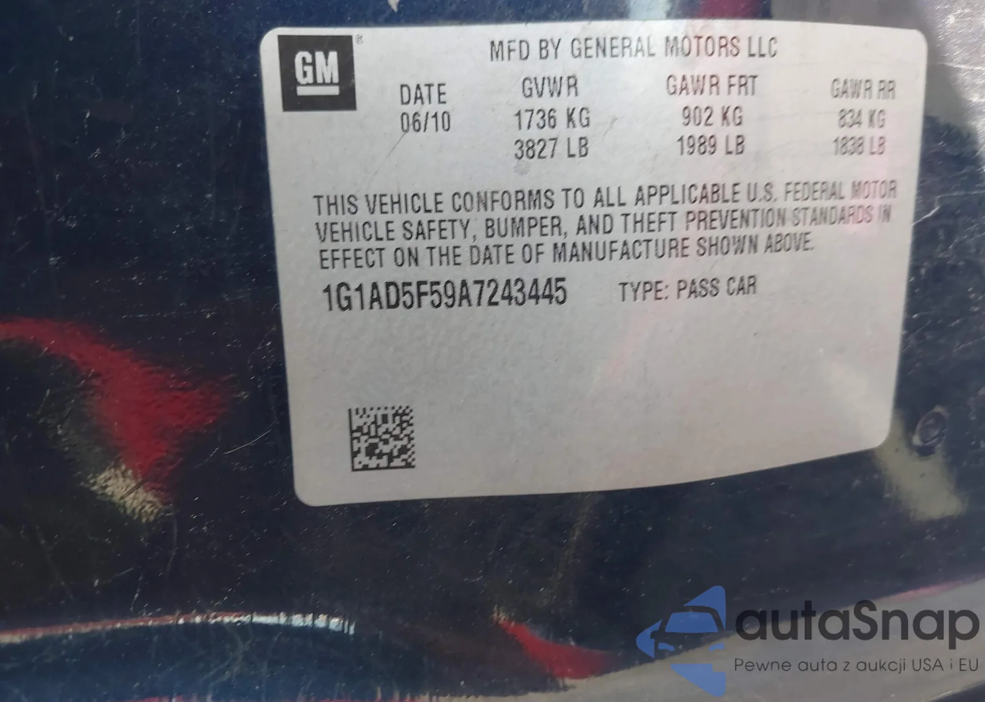 • VIN 1G1AD5F59A7243445