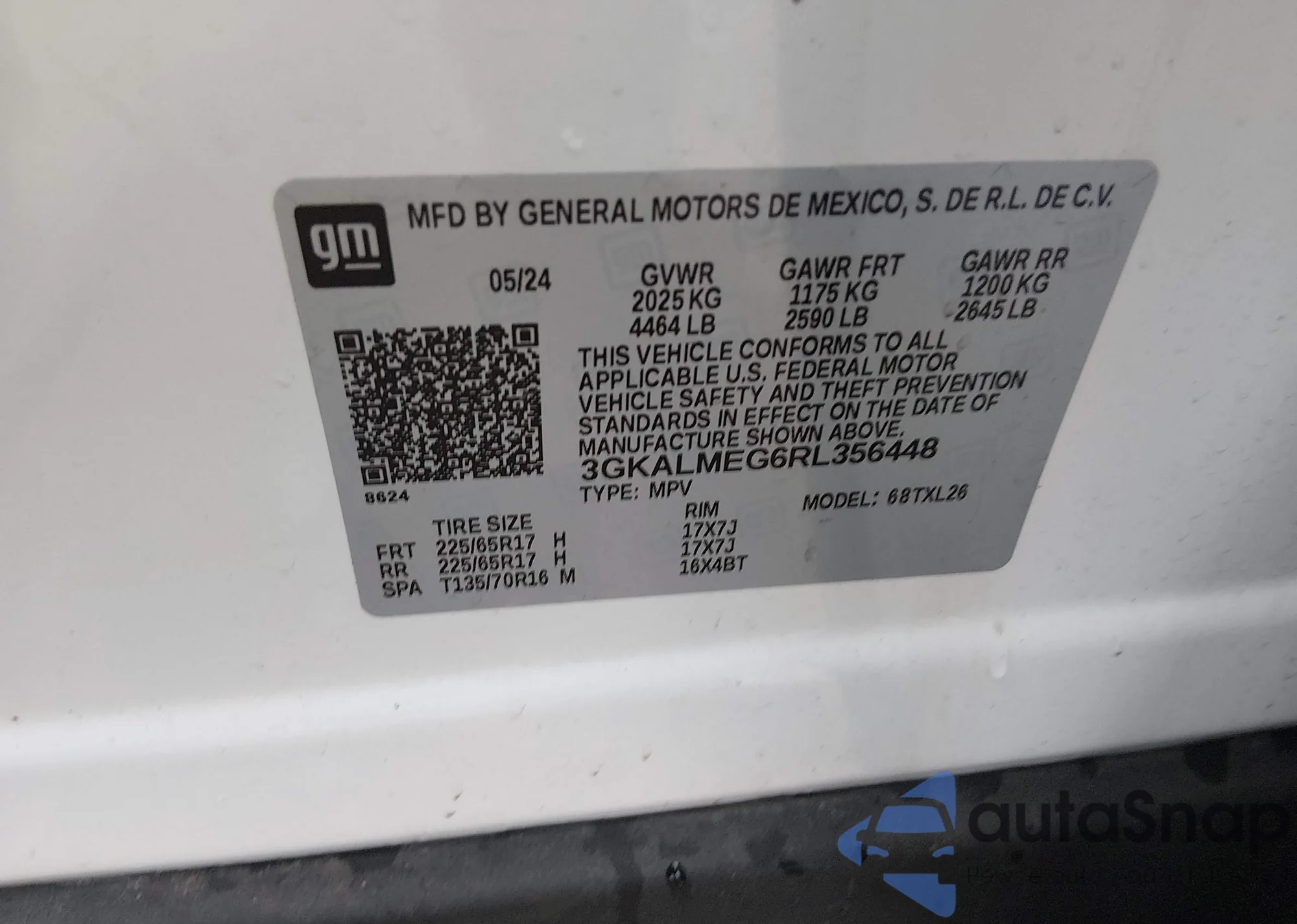 • VIN 3GNAXUEG7RL339469