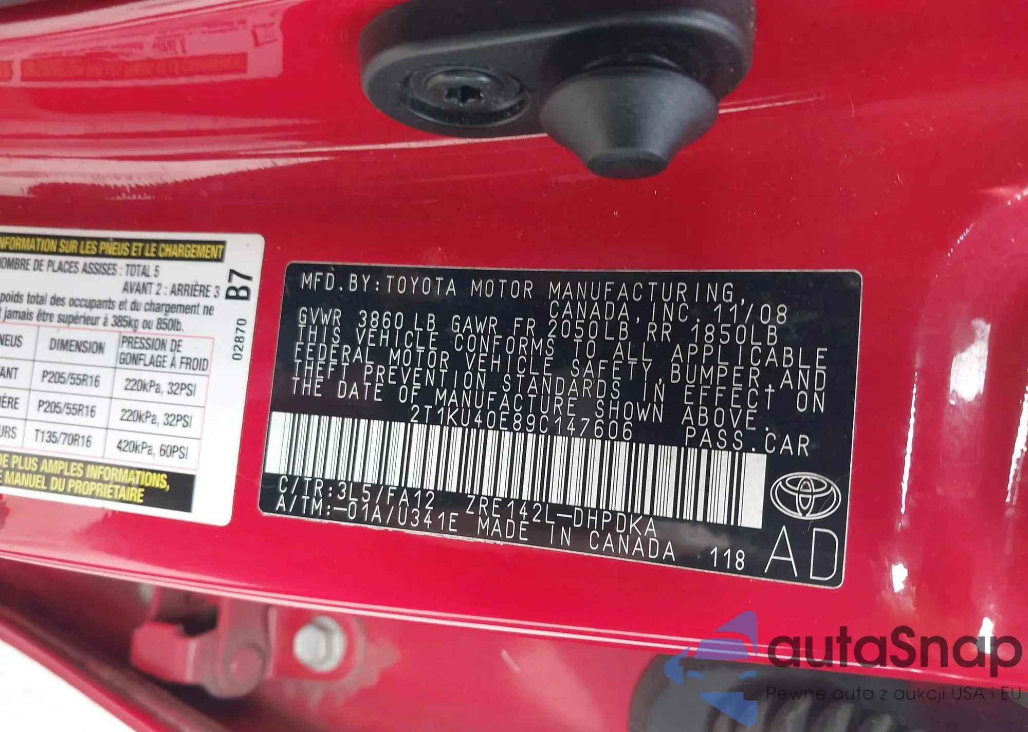 LOT: 43528472 VIN: 2T1KU40E89C147606