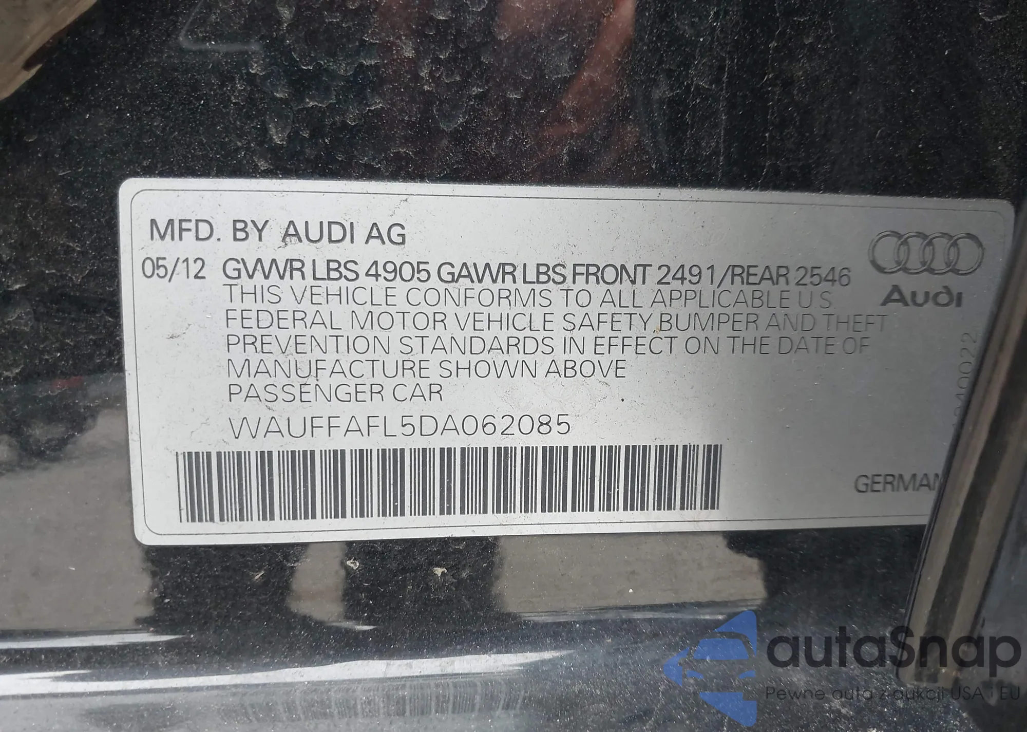 • VIN WAUFFAFL5DA062085