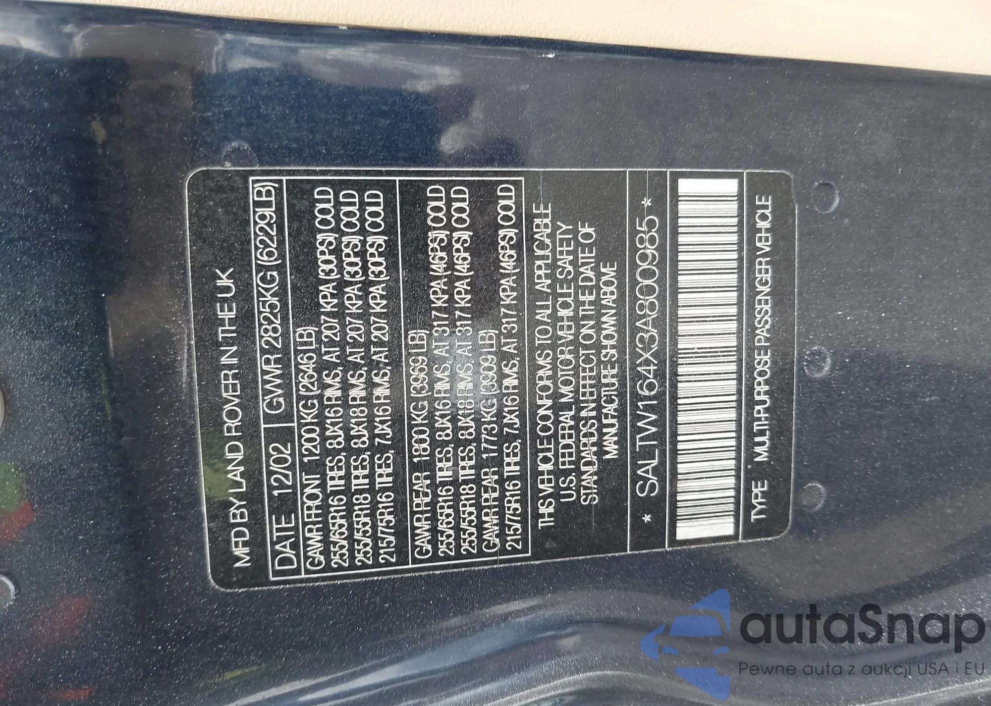 LOT: 44047792 VIN: SALTW164X3A800985