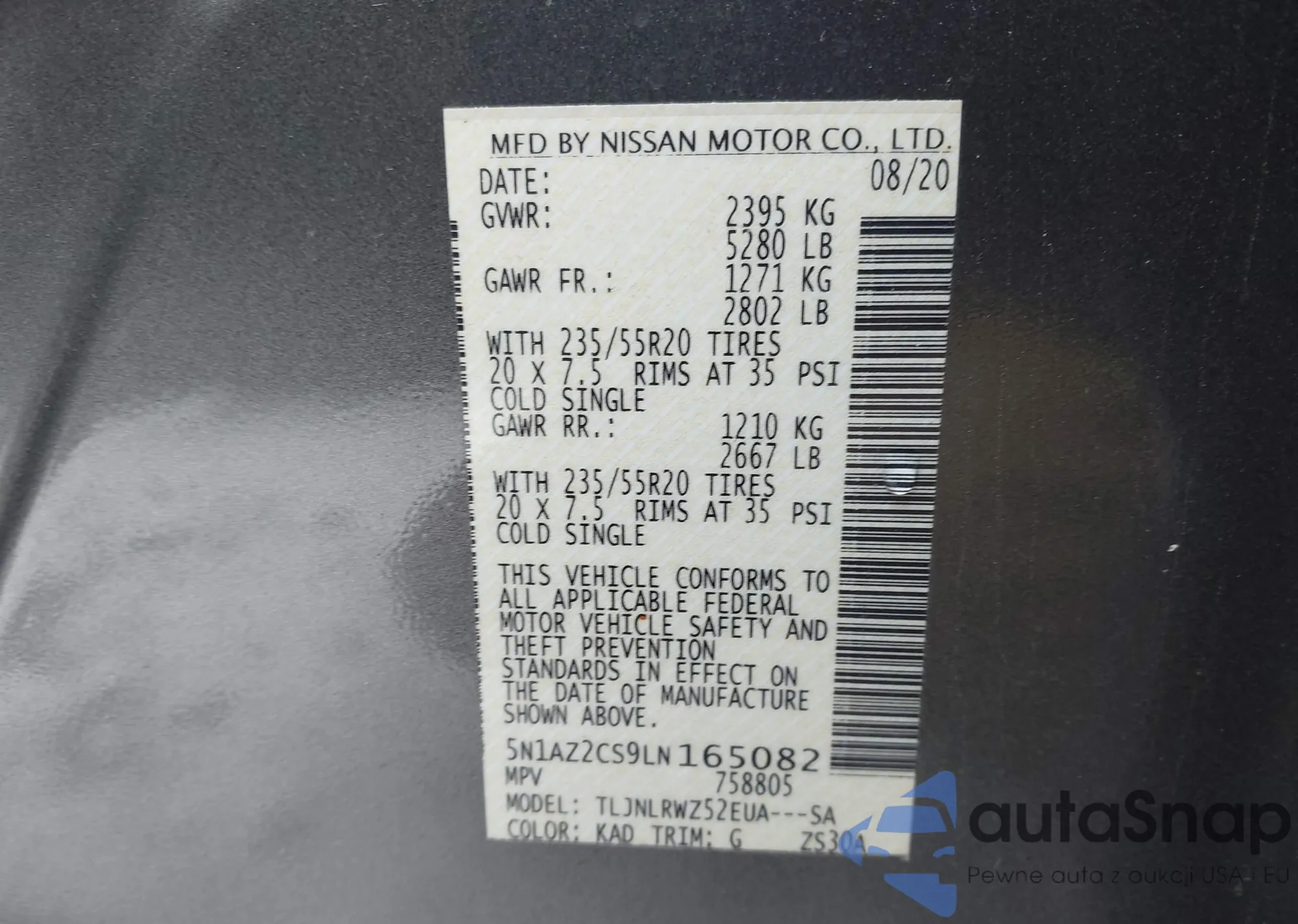 • VIN 5N1AZ2CS9LN165082