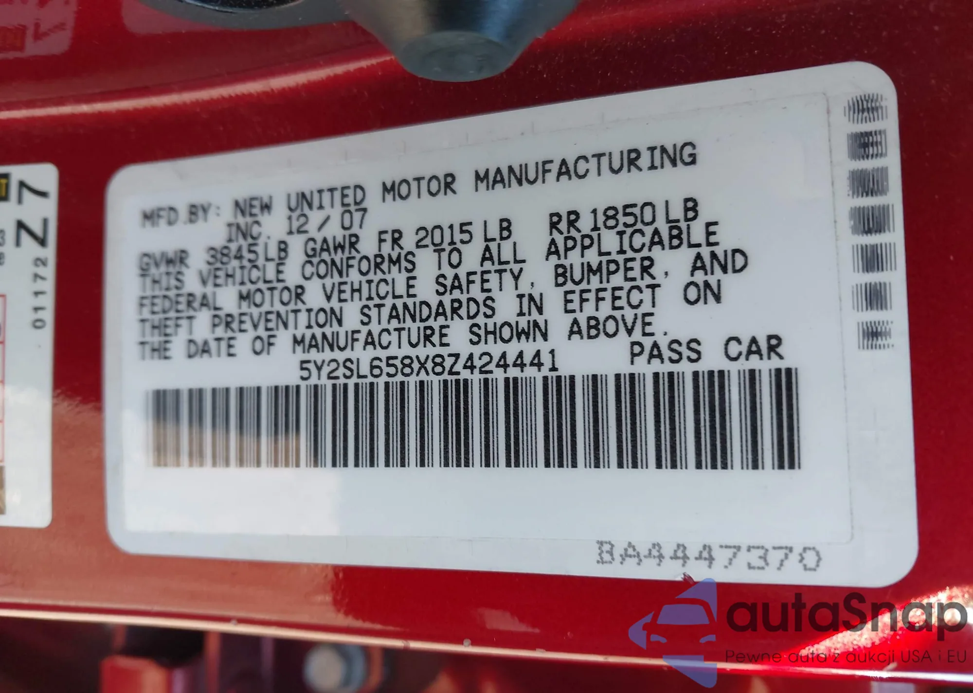 • VIN 4T1BF1FK0FU108993