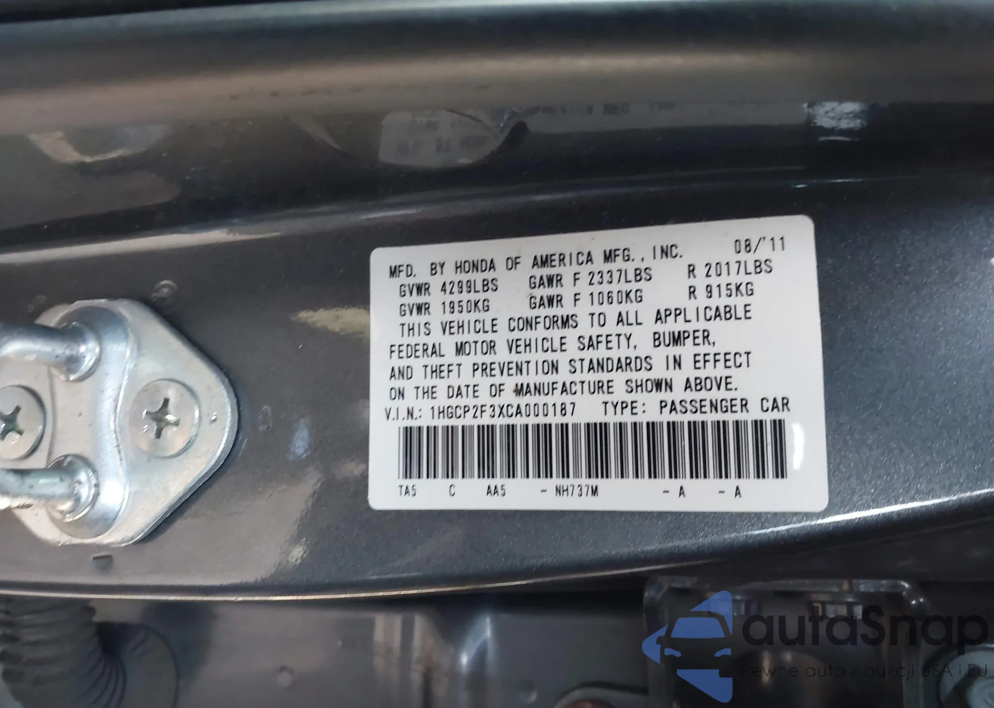 LOT: 43942887 VIN: 1HGCP2F33AA177855