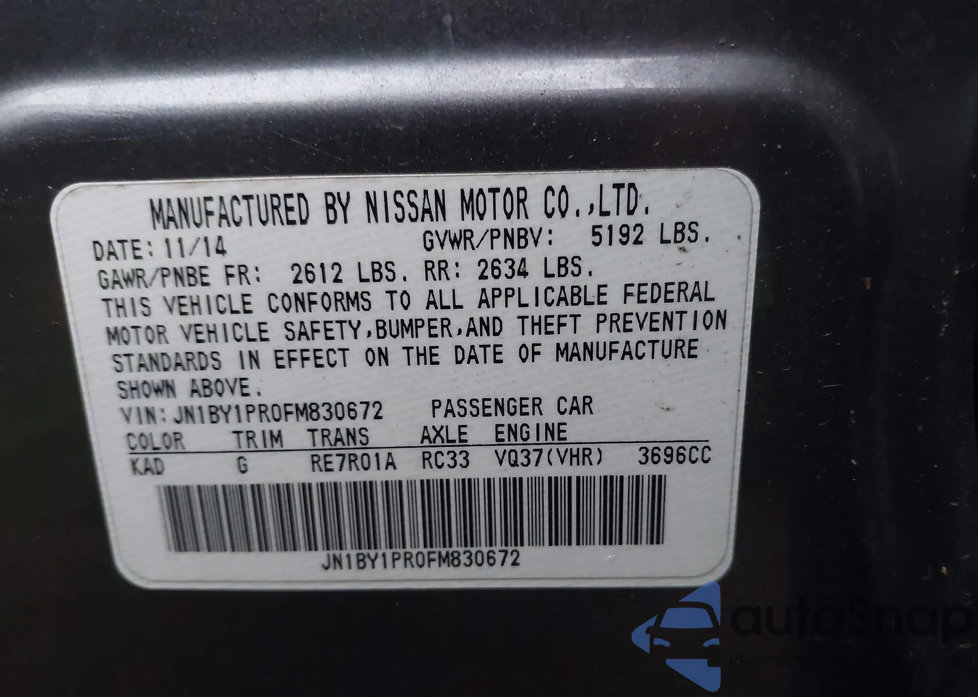 LOT: 44085453 VIN: JN1BY1PR0FM830672