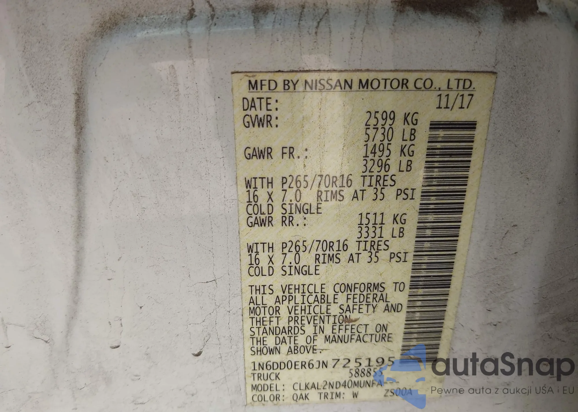 • VIN 1N6DD0ER6JN725195