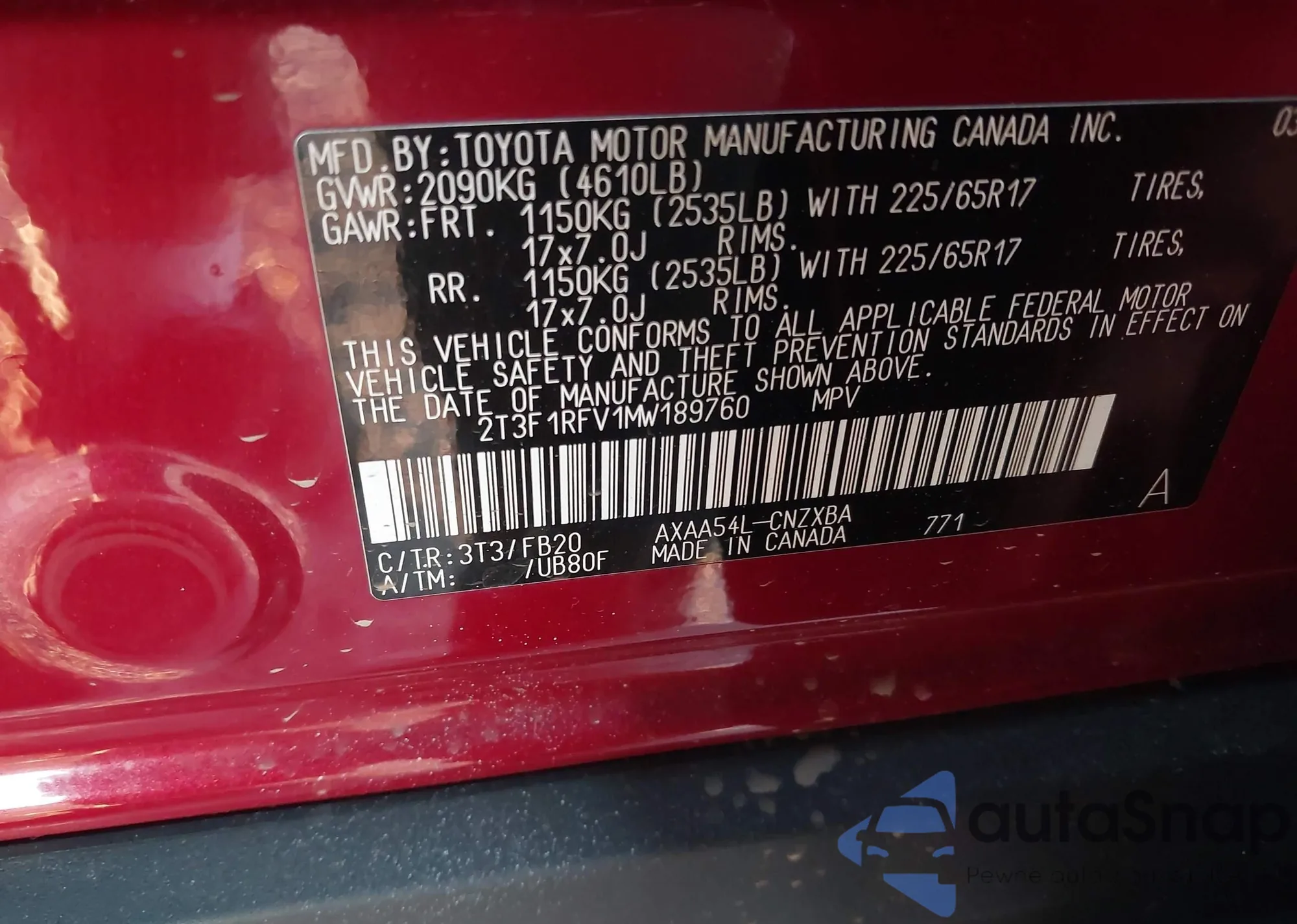 • VIN 4T1DAACK9SU504720