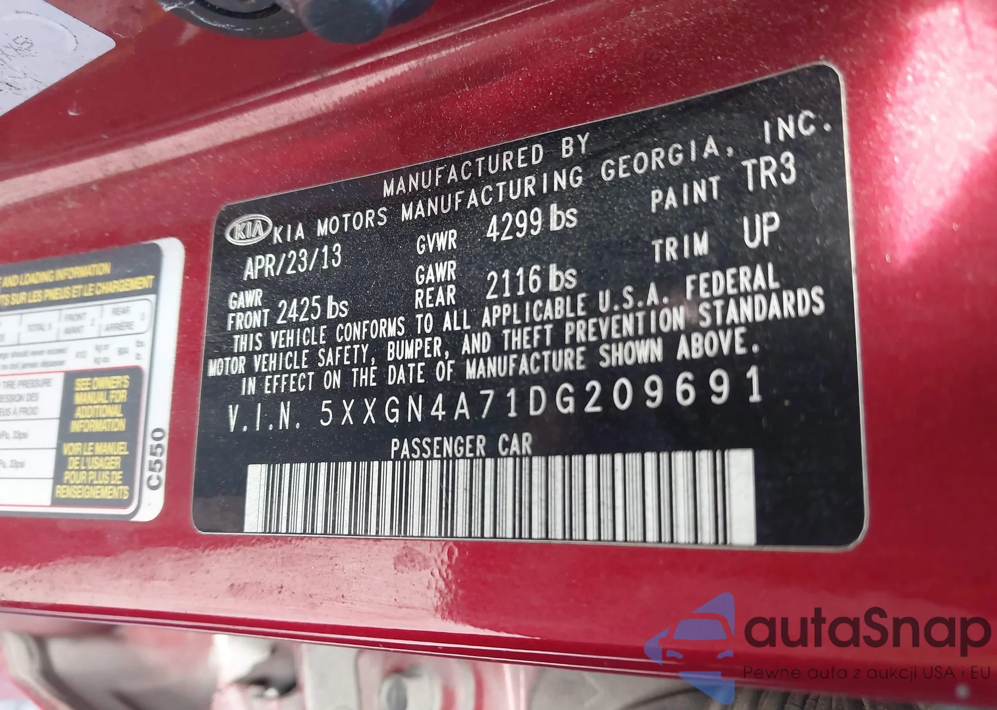 LOT: 43905387 VIN: 5XXGN4A71DG209691