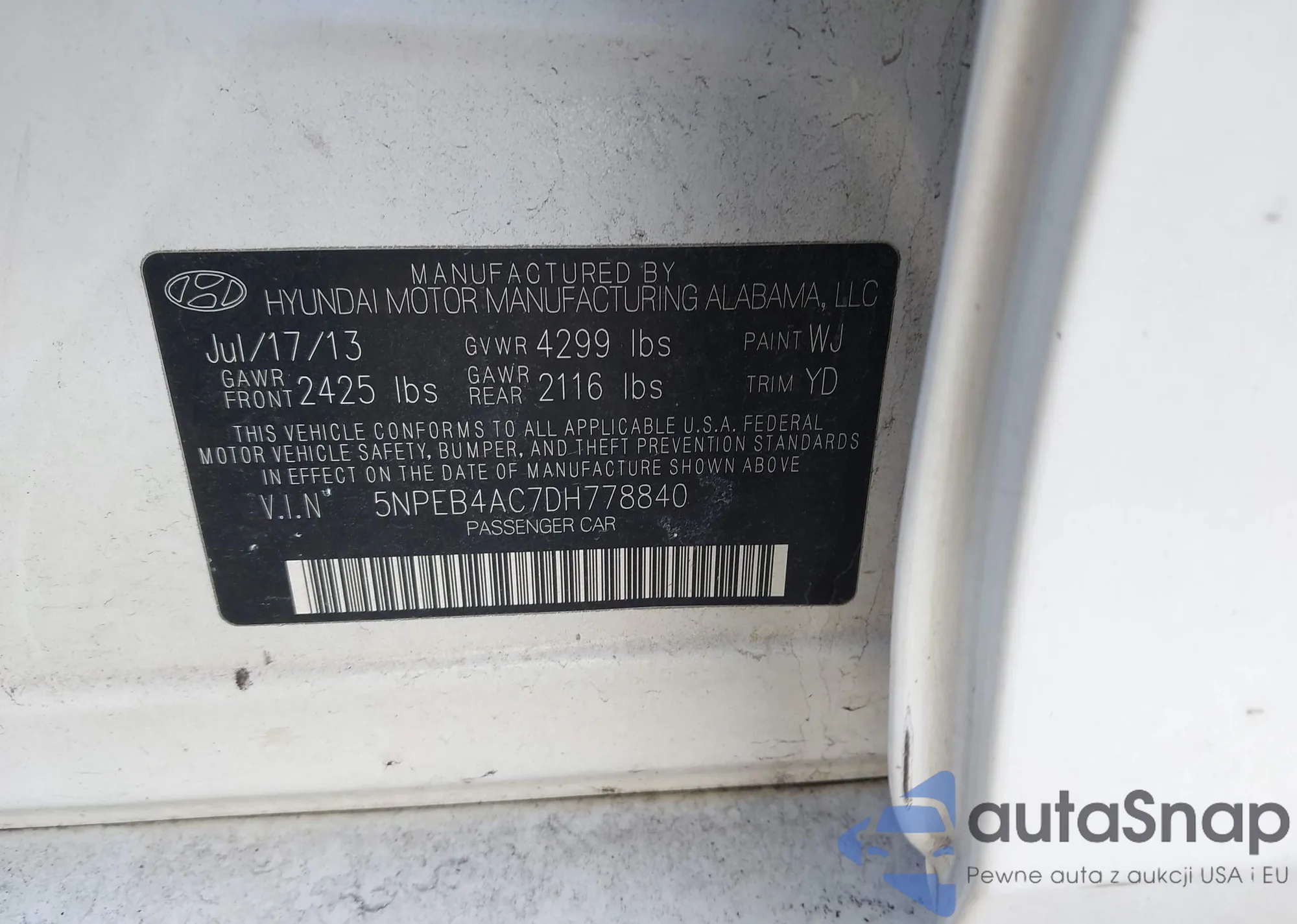 • VIN 5NPEB4AC7DH778840
