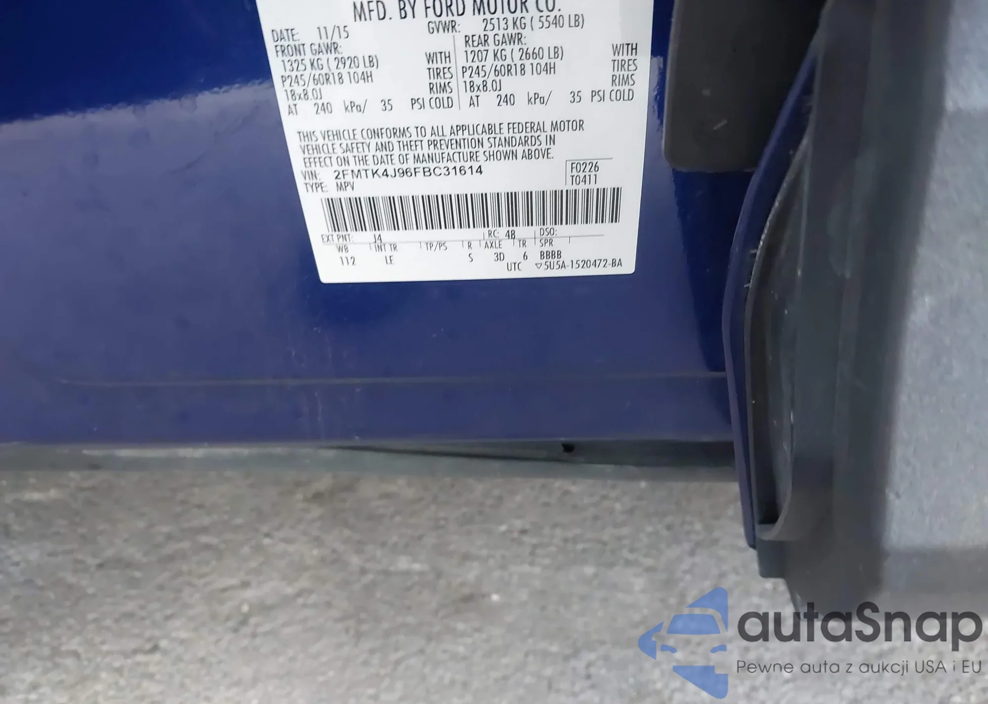 LOT: 43706514 VIN: 2FMTK4J96FBC31614