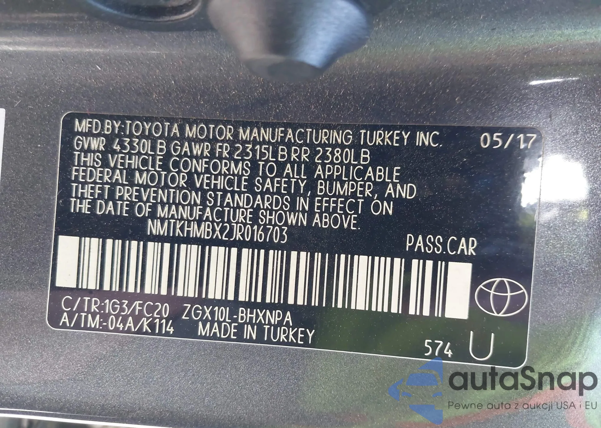 • VIN 1NXBU4EEXAZ374078