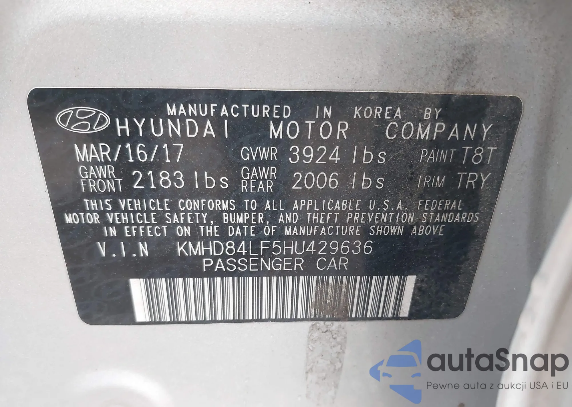 LOT: 43643182 VIN: KMHD84LF5HU429636