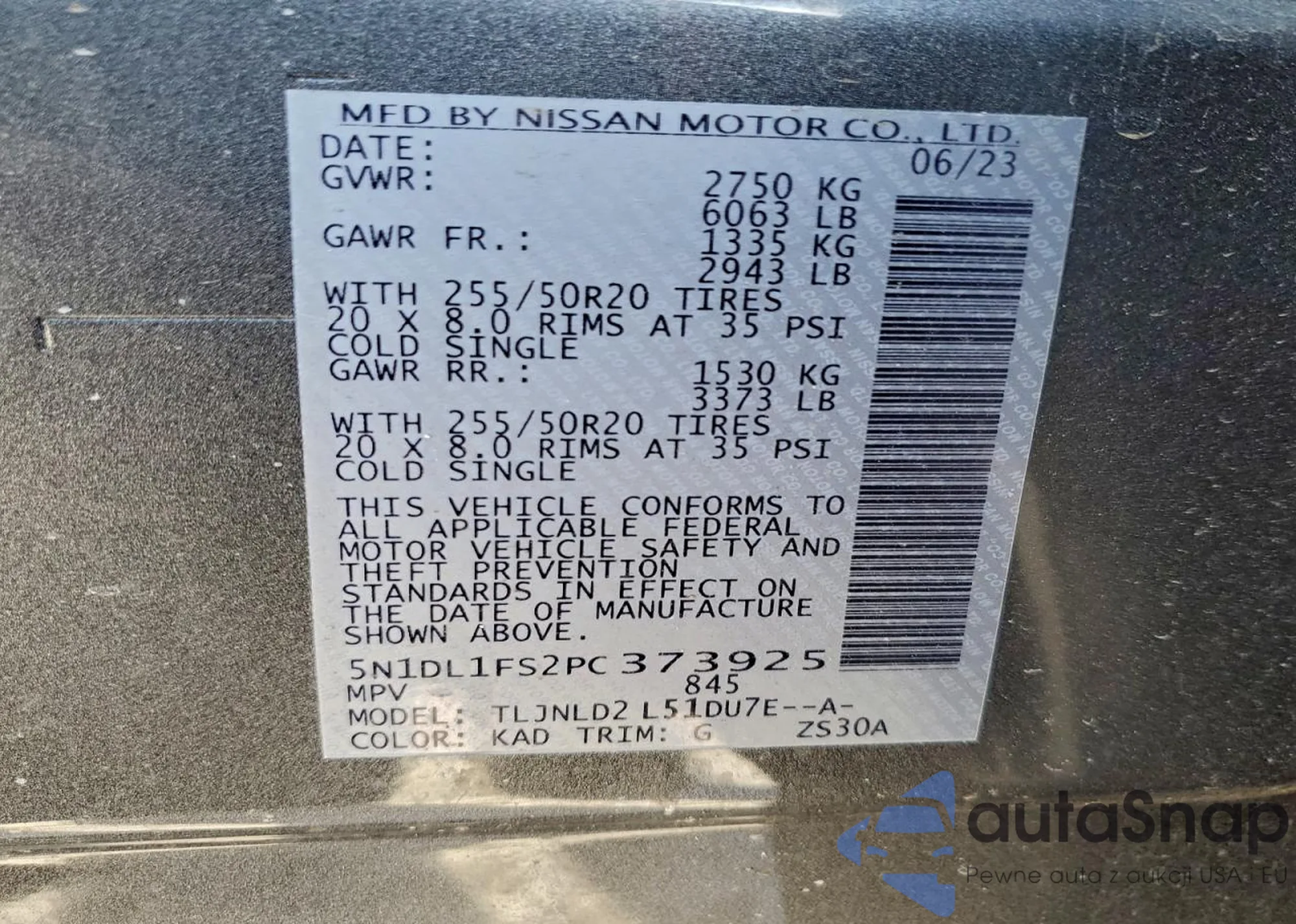 LOT: 97130865 VIN: 5N1DL1FS2PC373925