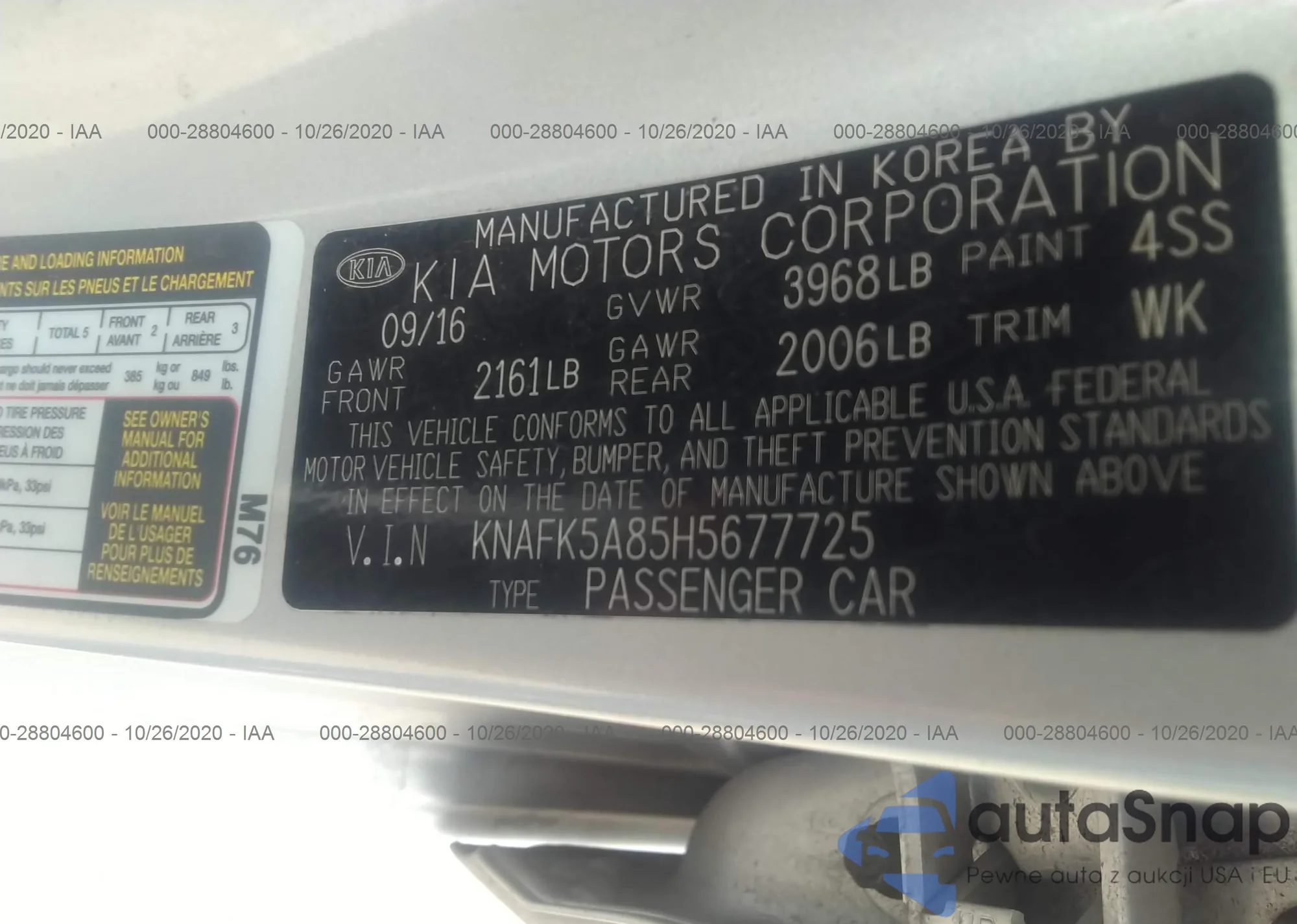 LOT: 28804600 VIN: KNAFK5A85H5677725