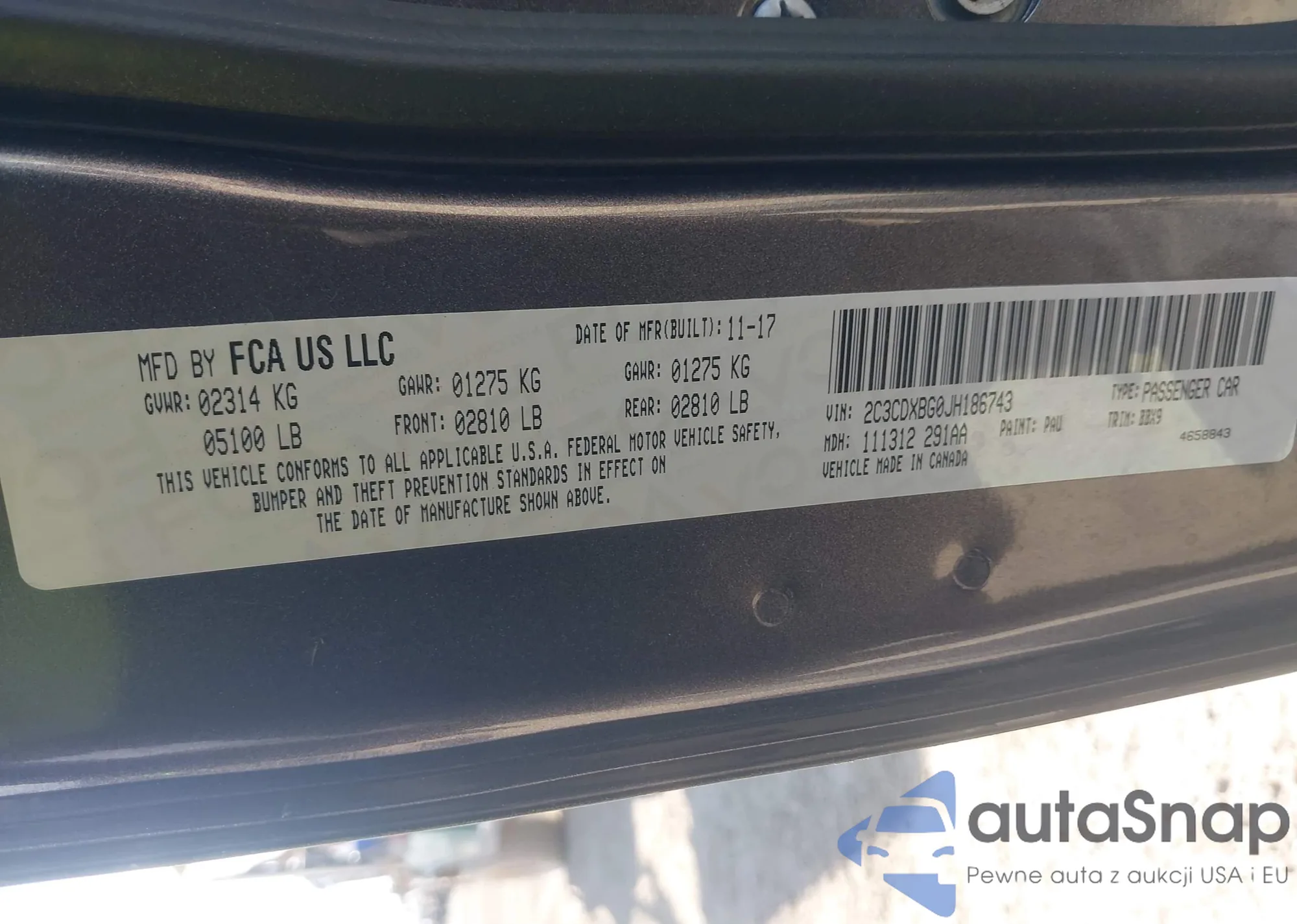 LOT: 42893812 VIN: 2C3CCAAGXDH556439
