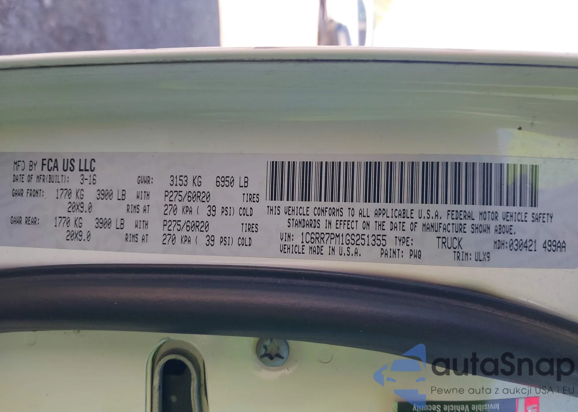 • VIN 1C6RR7PM1GS251355