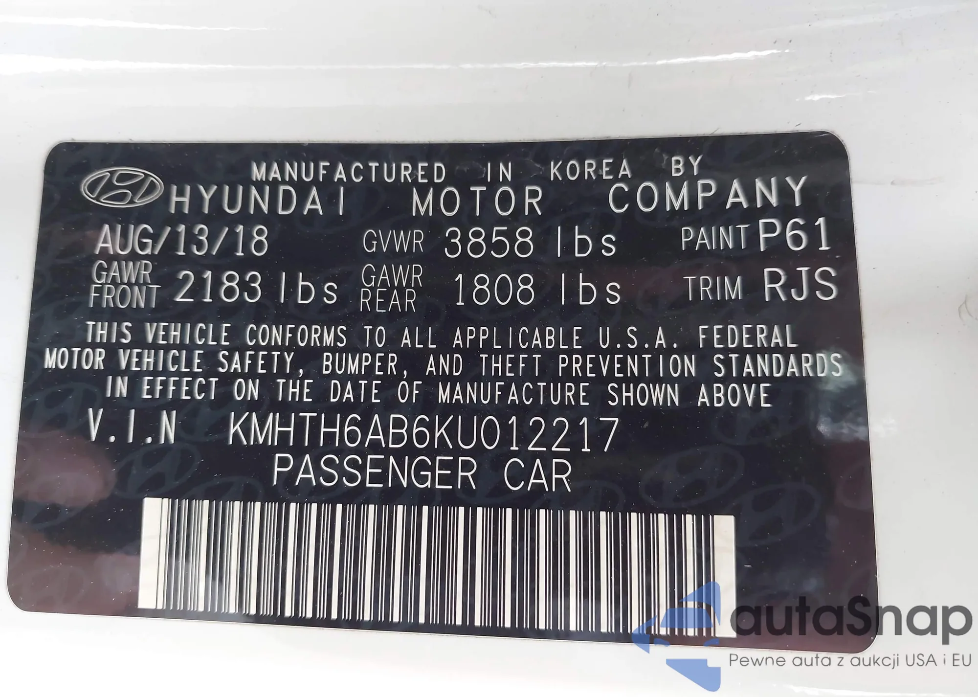 • VIN KMHTH6AB6KU012217