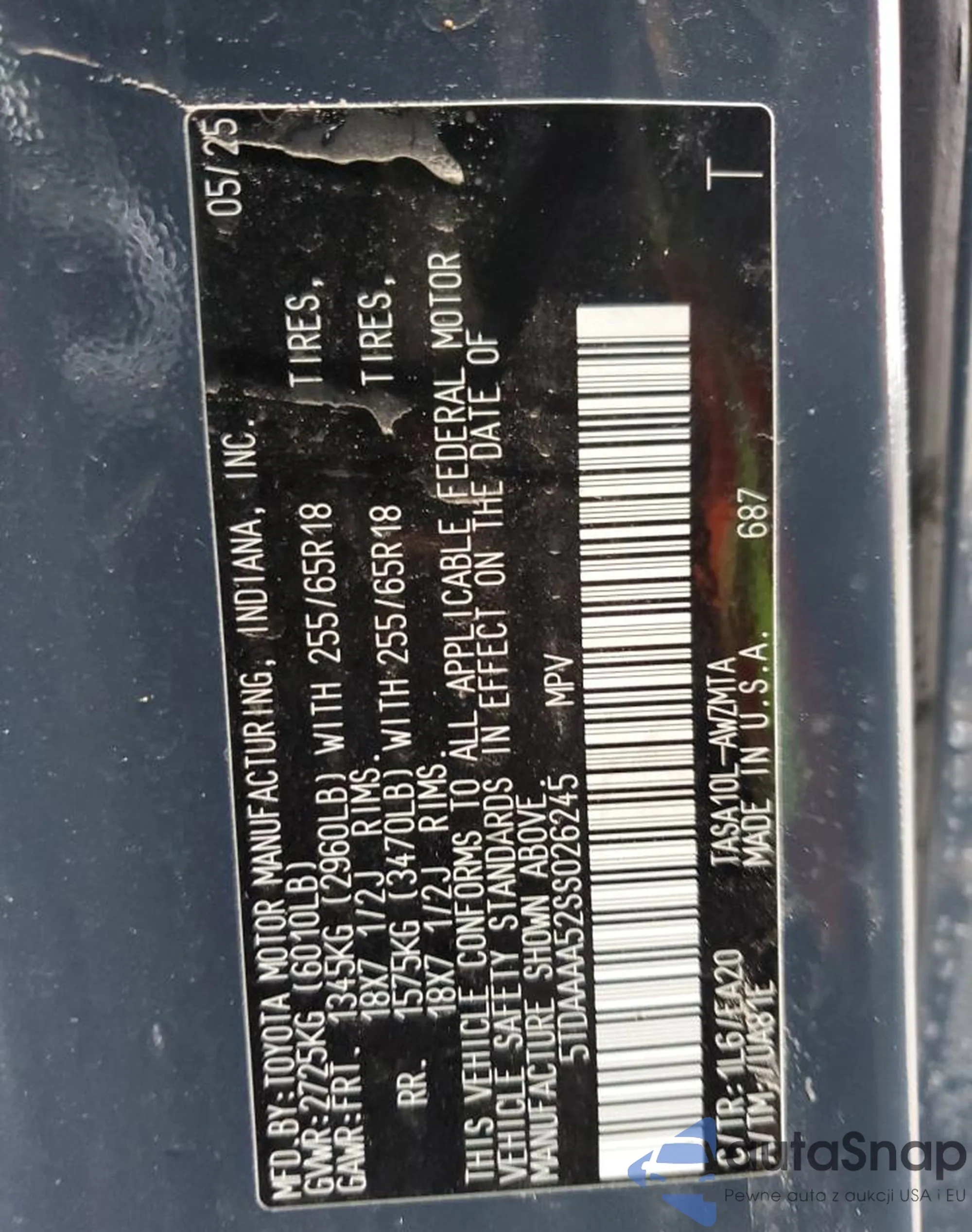 • VIN 5TDAAAA52SS026245