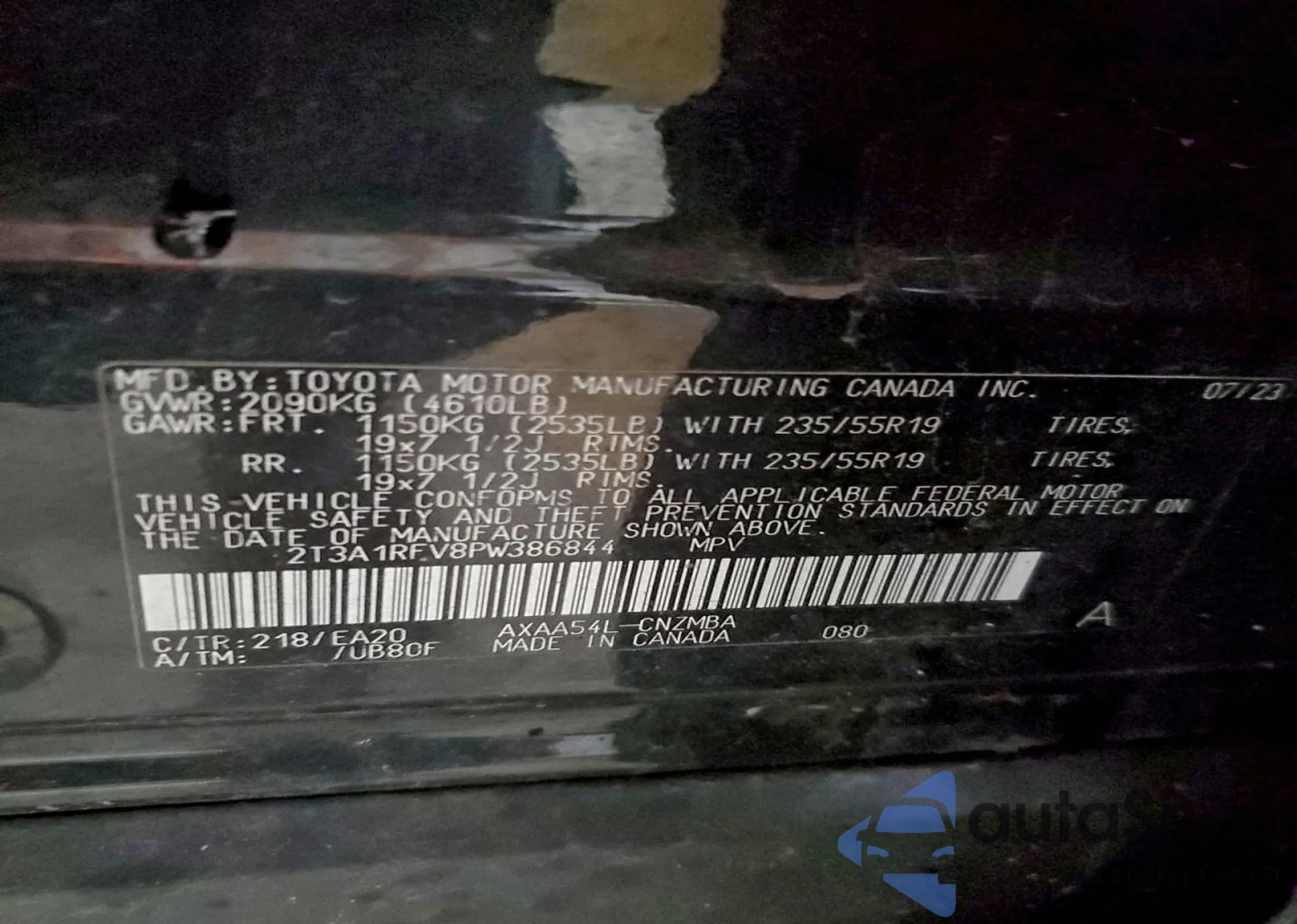 LOT: 94308075 VIN: 2T3A1RFV8PW386844