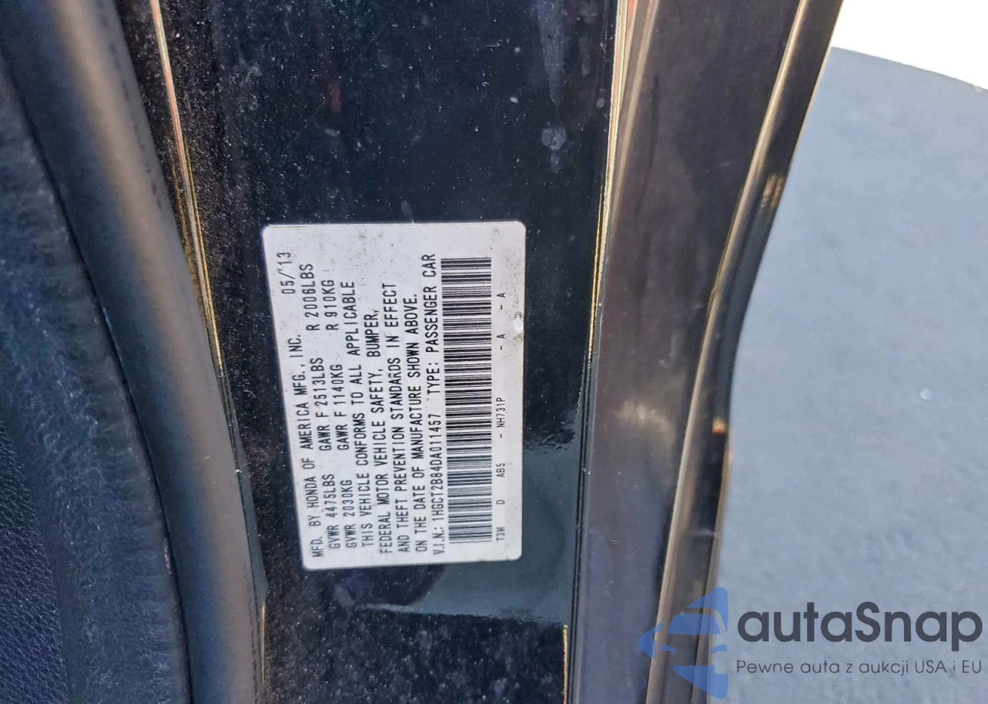 LOT: 99304695 VIN: 1HGCT2B84DA011457