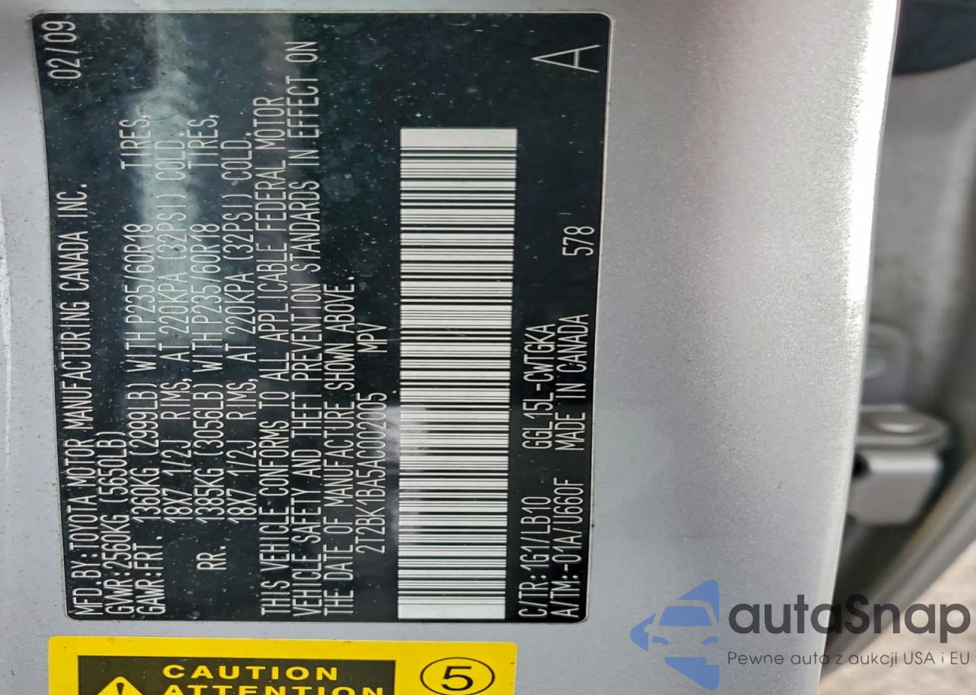 • VIN 2T2BK1BA5AC002005