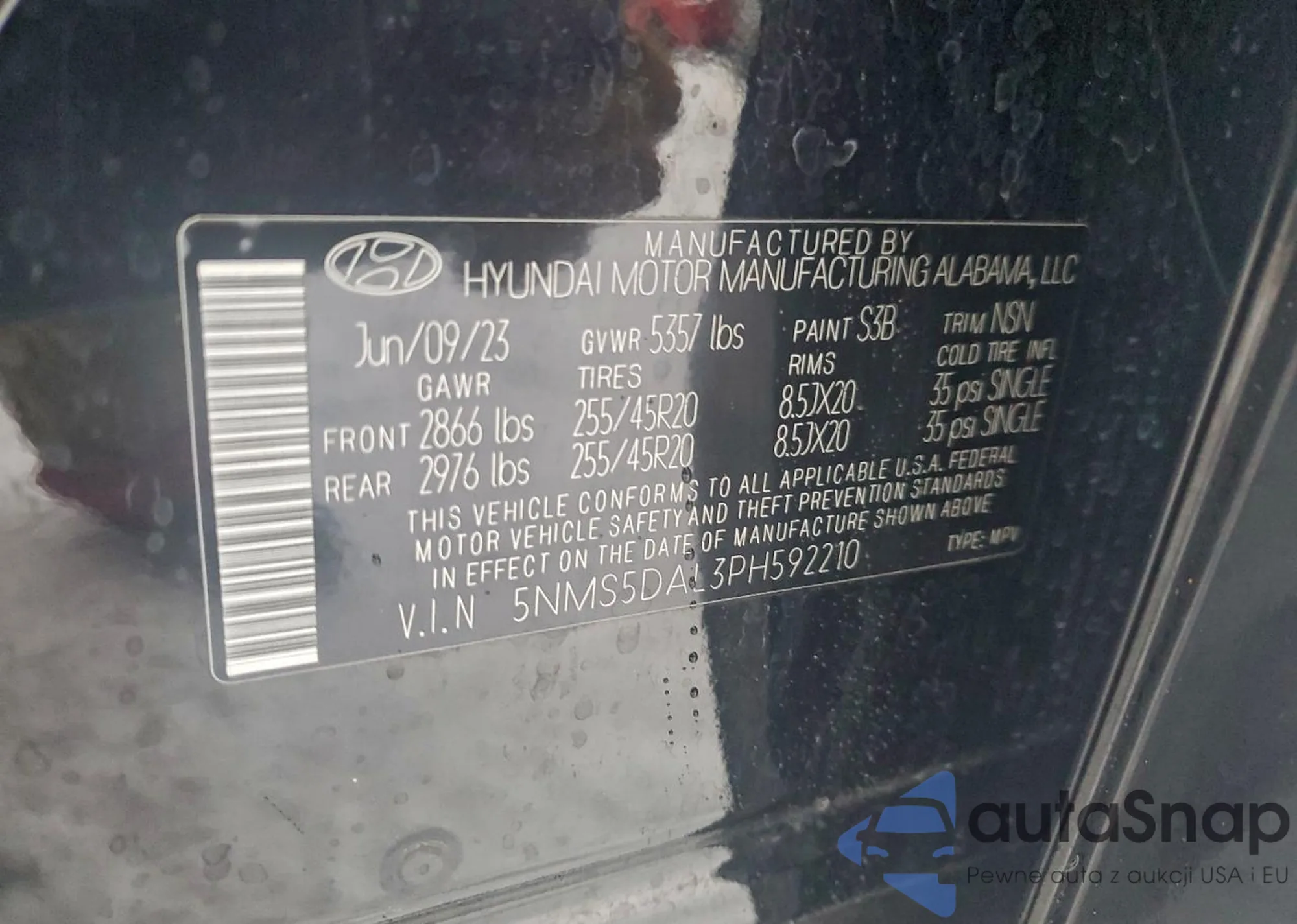 • VIN 5NMS5DAL3PH592210