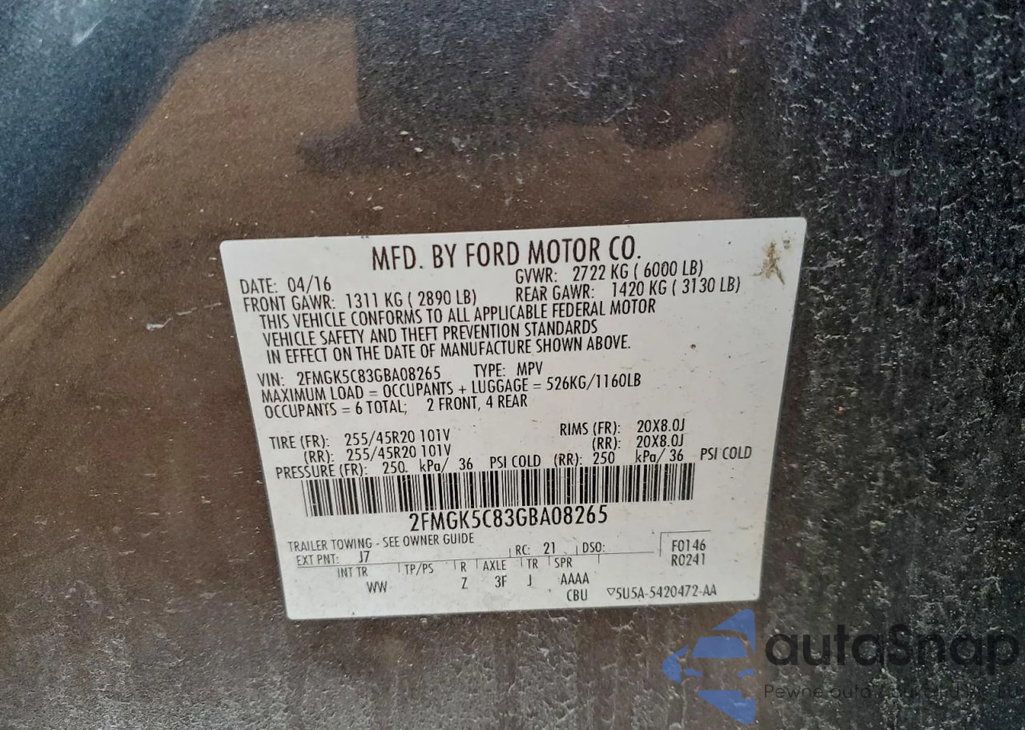 • VIN 2FMGK5C83GBA08265