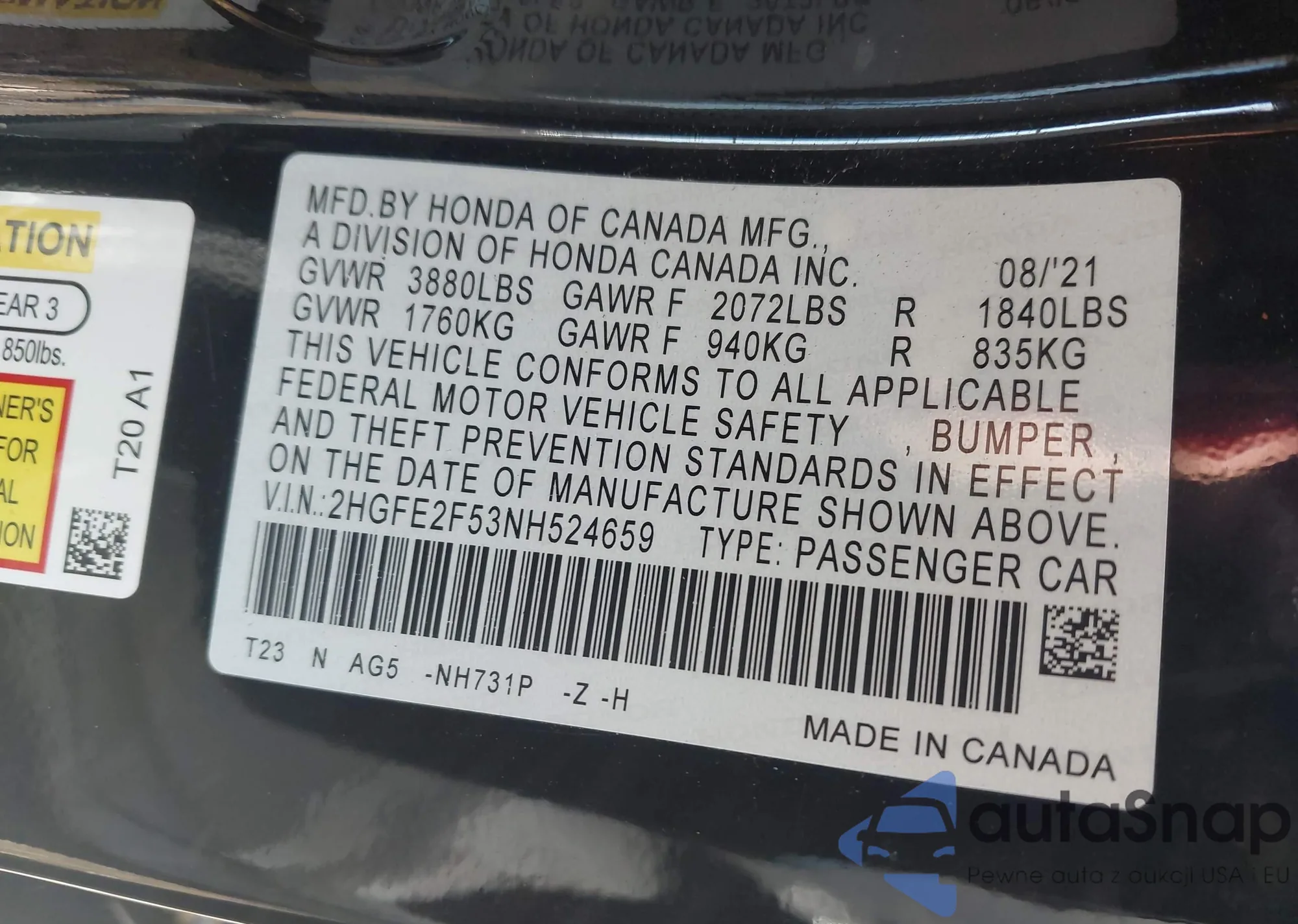 • VIN 2HGFE2F53NH524659