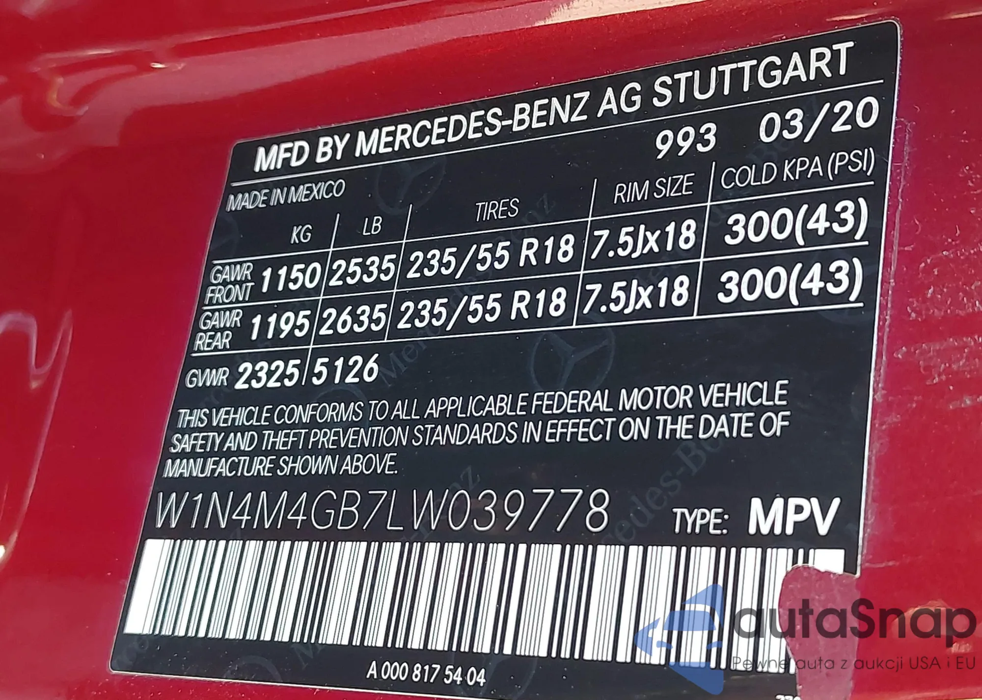 • VIN W1N4M4GB7LW039778