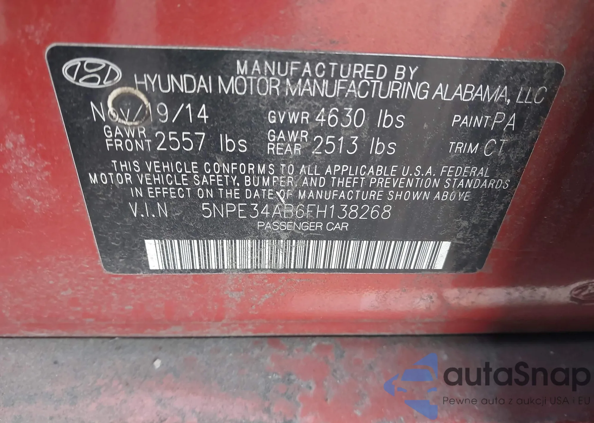 • VIN 5NPE34AB6FH138268