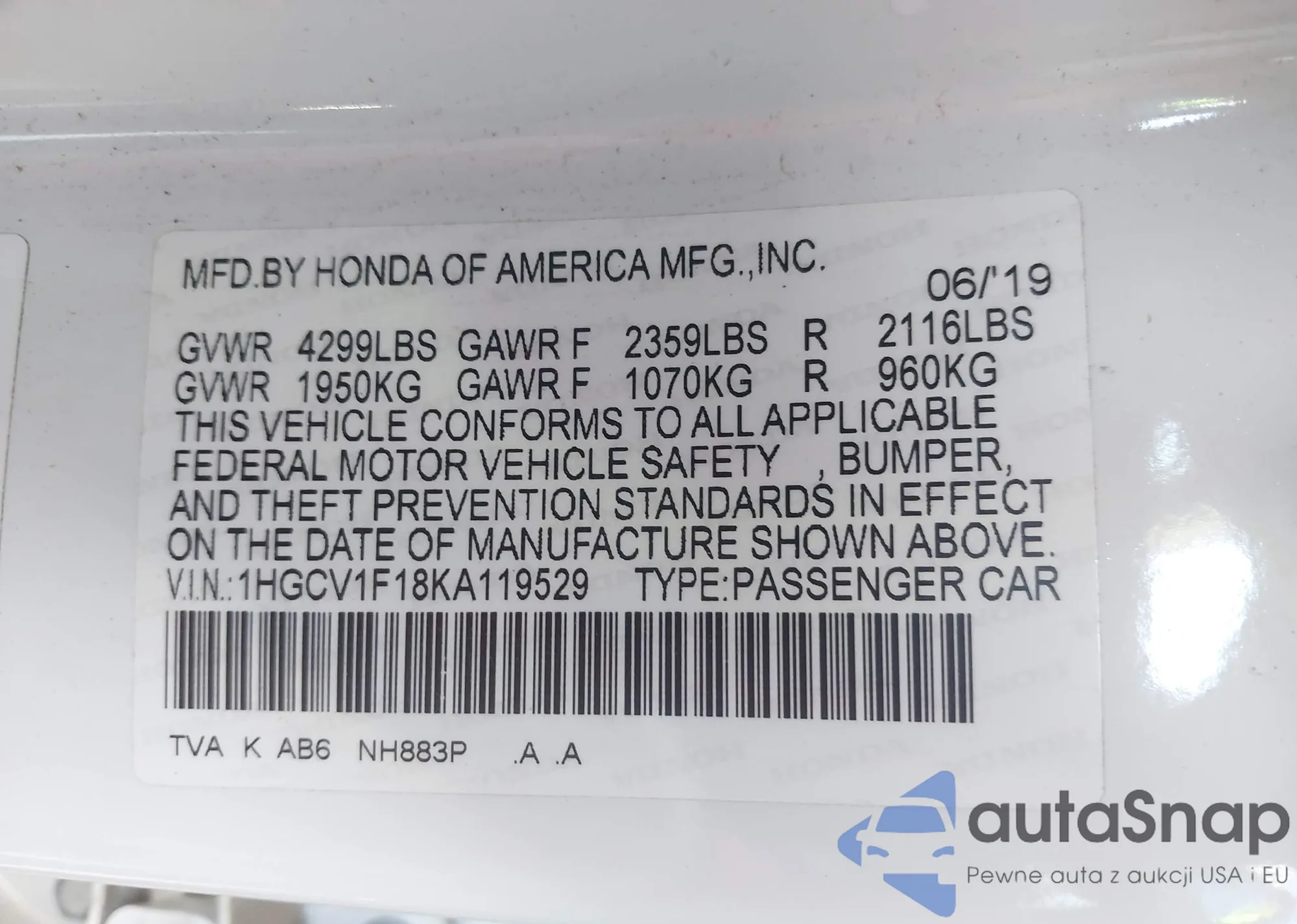 LOT: 43332452 VIN: WAUJ8GFF4H1014326