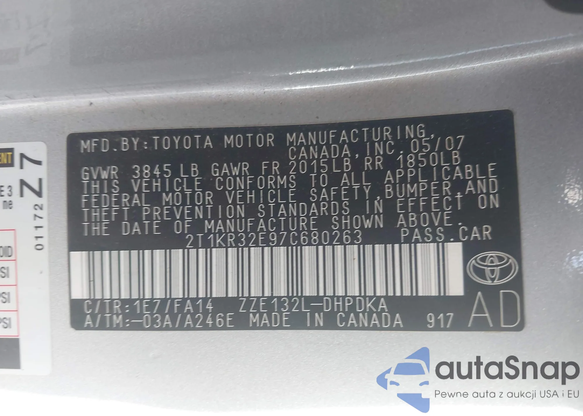 • VIN 2T1BU4EE6CC882232