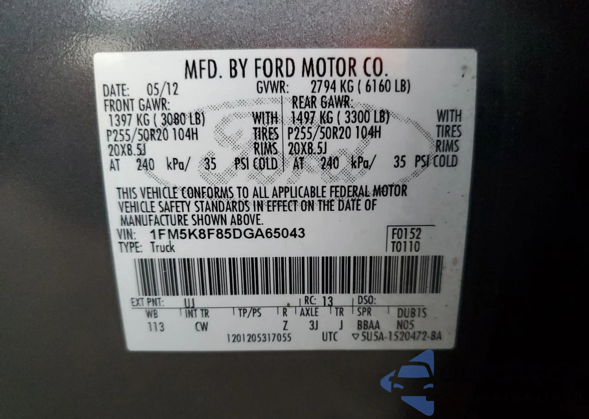 • VIN 1FM5K8F85DGA65043