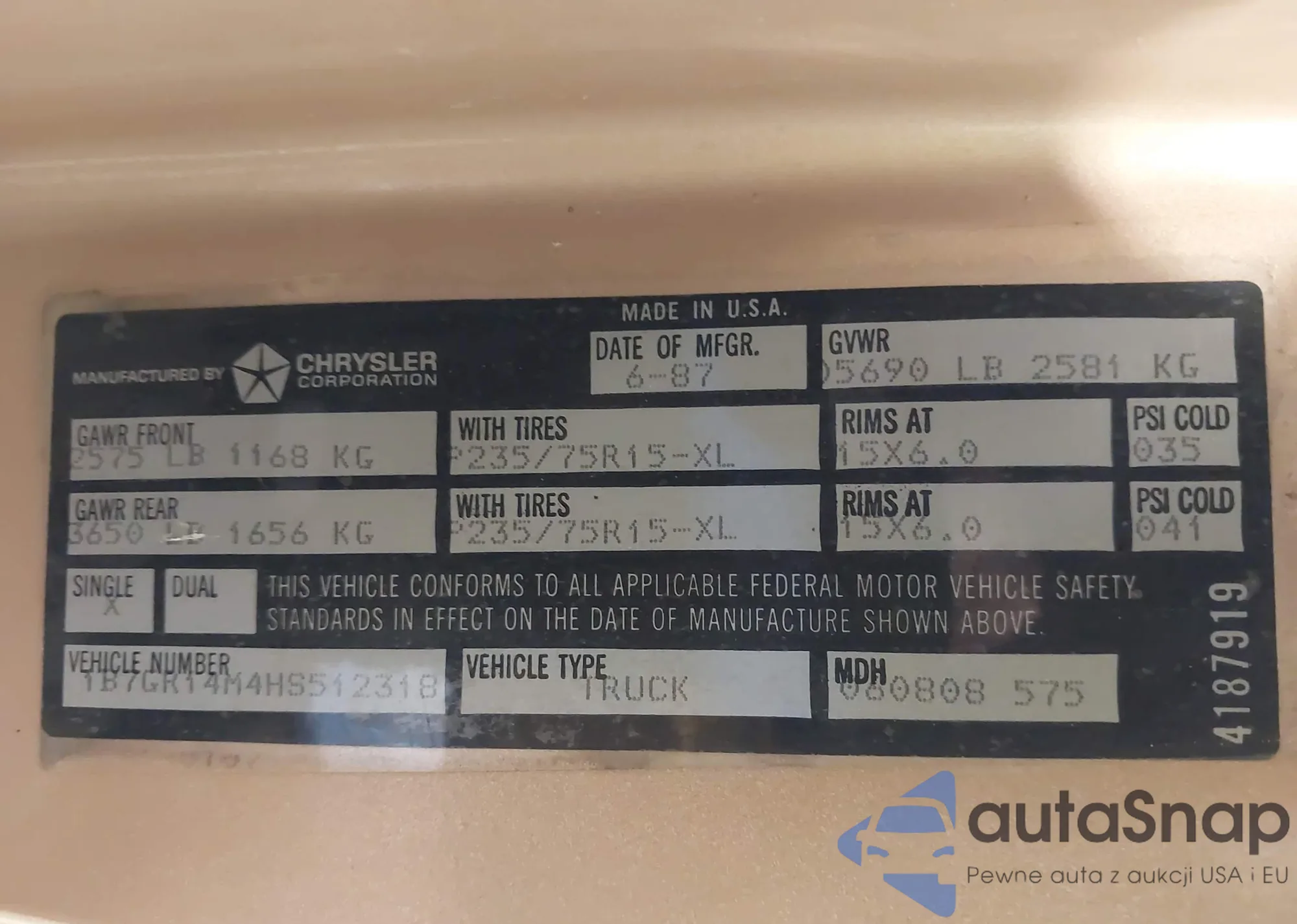 • VIN 1B7GR14M4HS512318