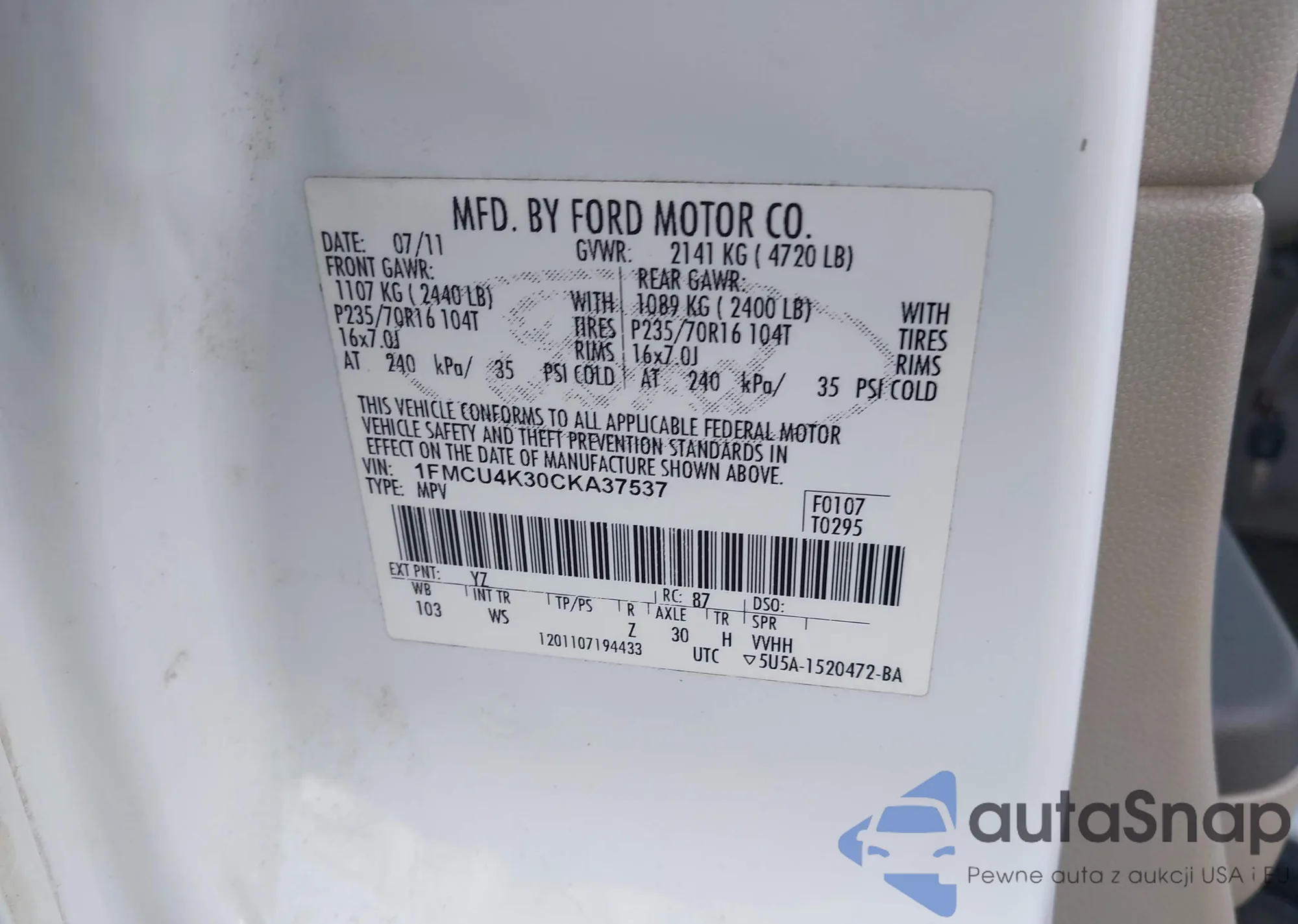 • VIN 1FMCU4K30CKA37537