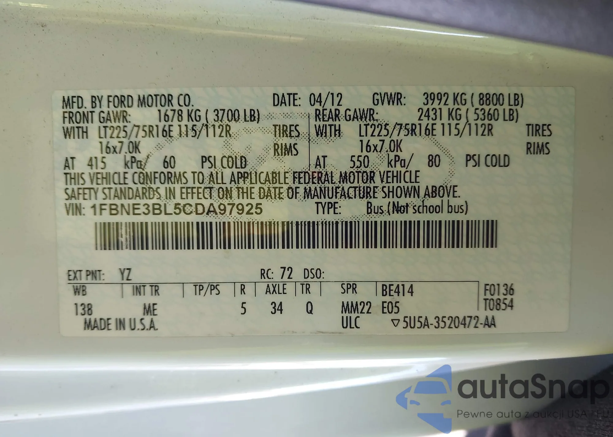 • VIN 1FBNE3BL5CDA97925