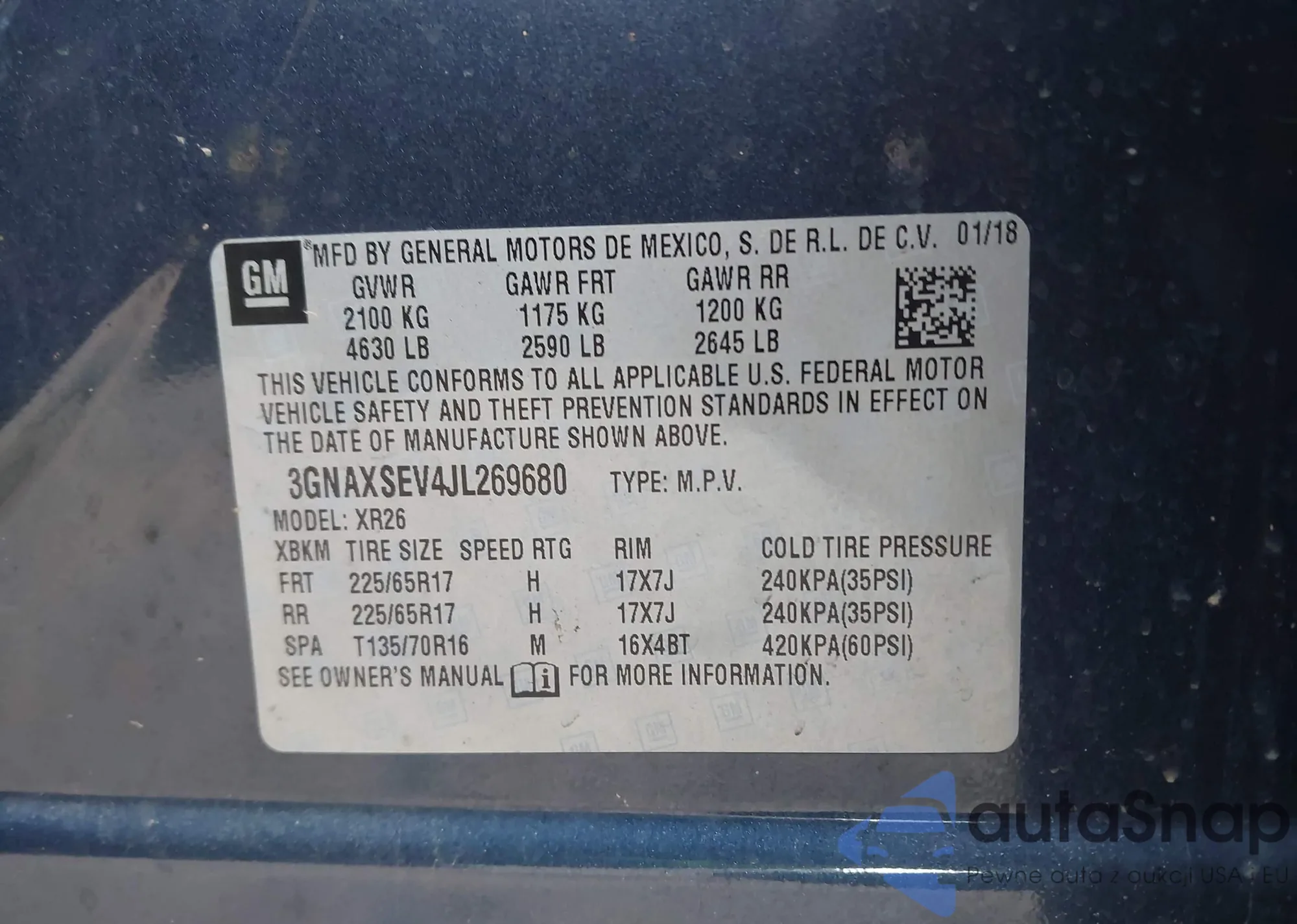 • VIN 3GNAXSEV4JL269680