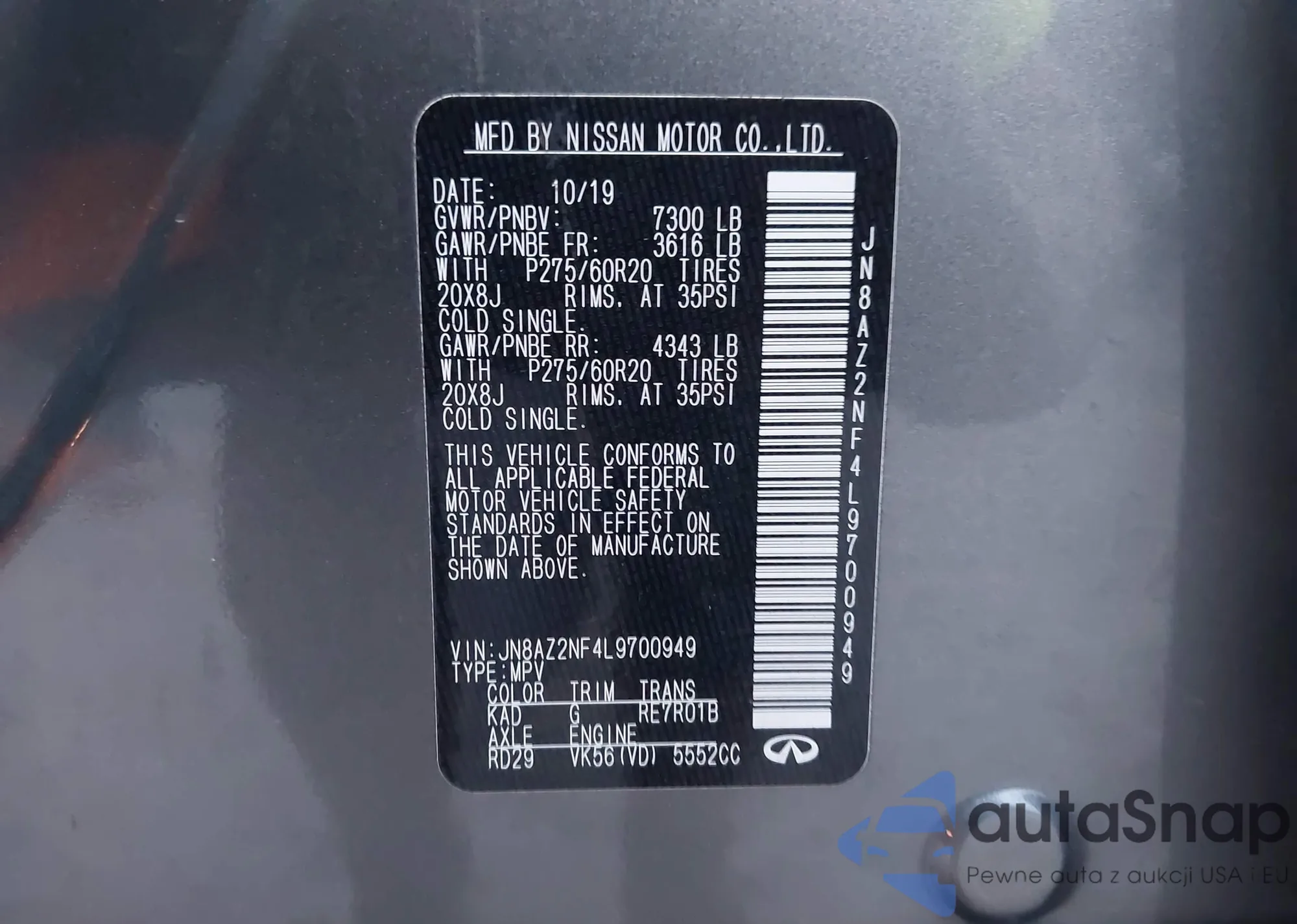• VIN JN8AZ2NF4L9700949
