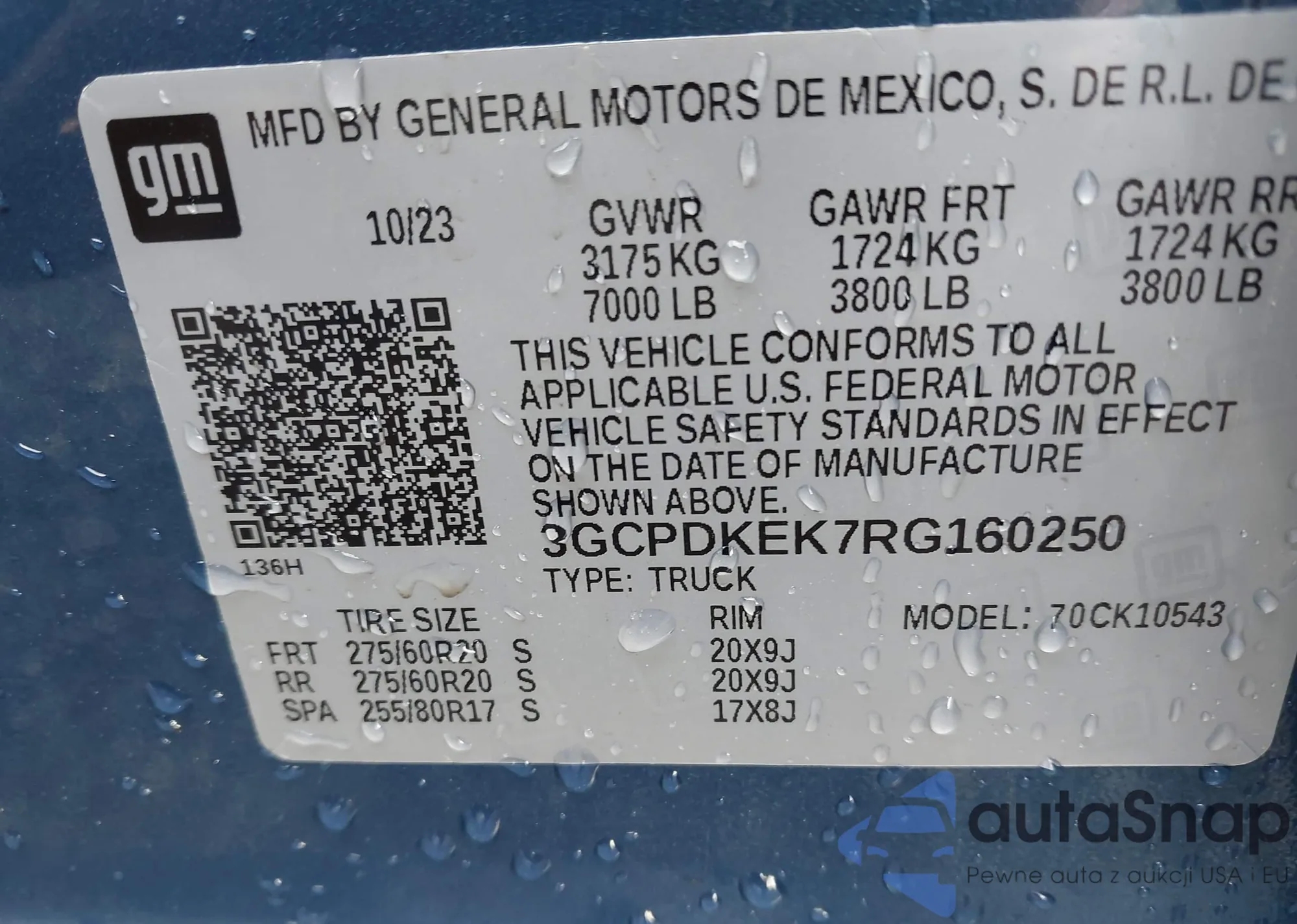 • VIN 3GCPDKEK7RG160250