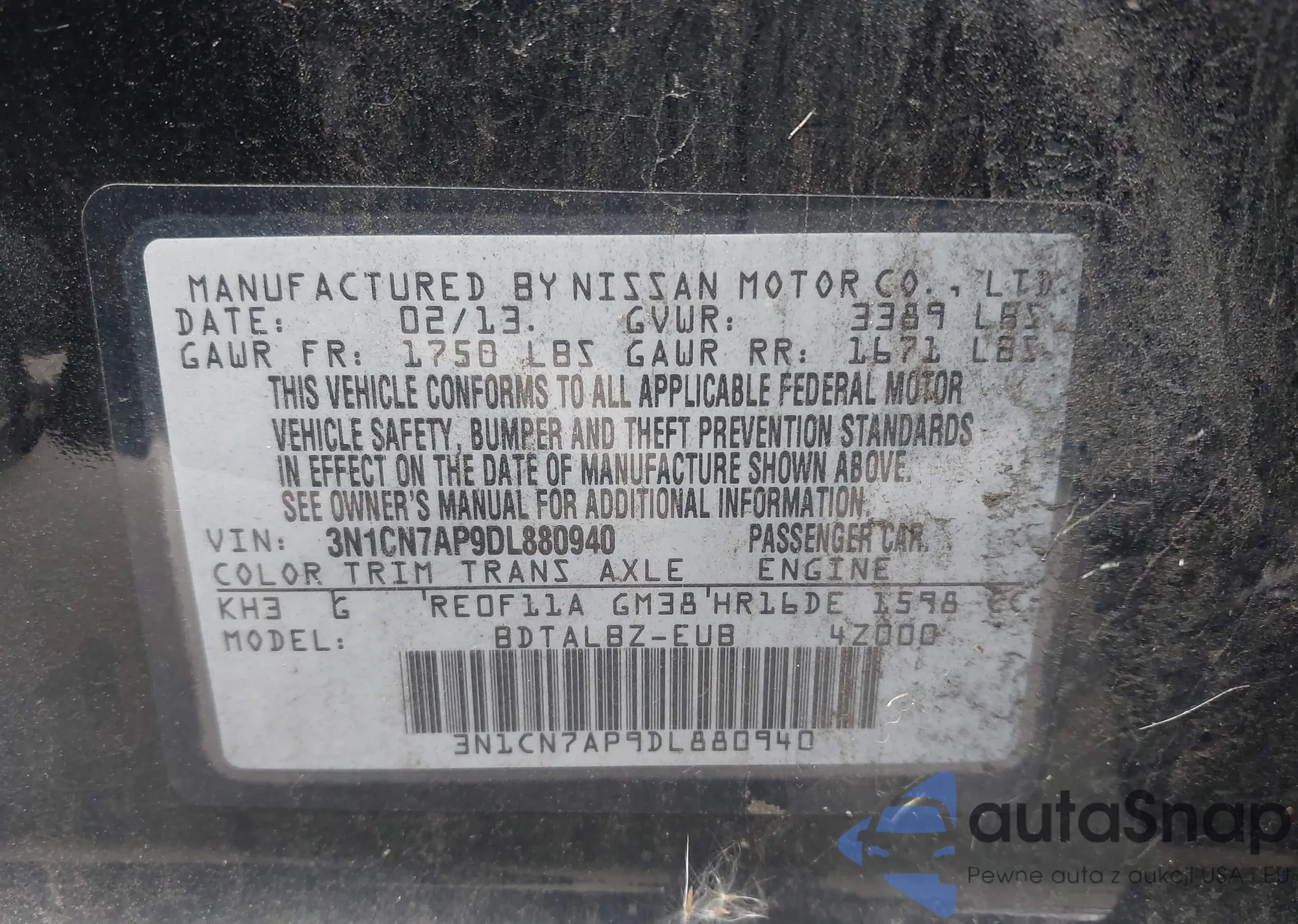 • VIN 3N1CN7AP9DL880940