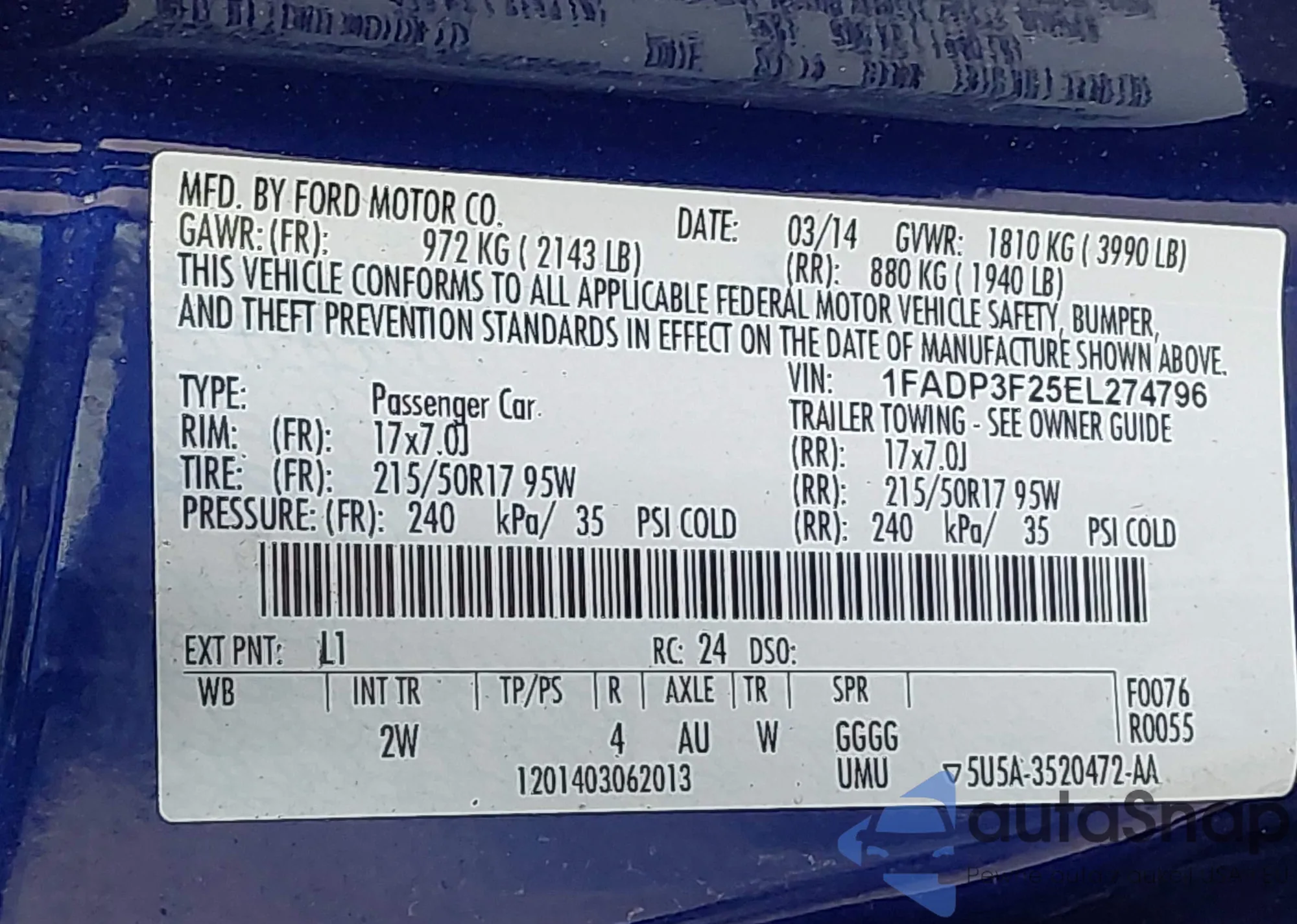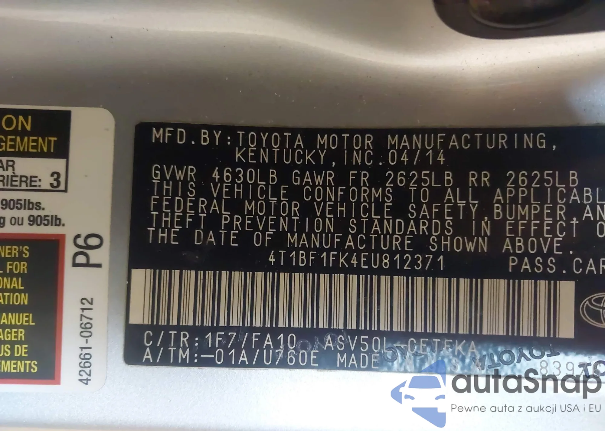 • VIN 4T1BF1FK4EU812371