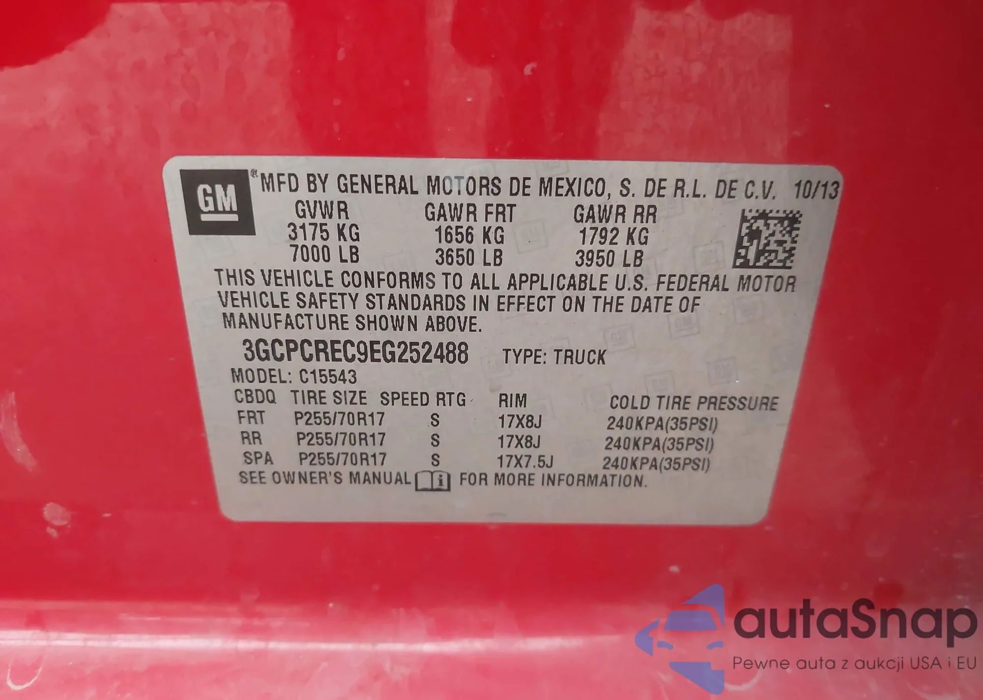 • VIN 3GCPCREC9EG252488